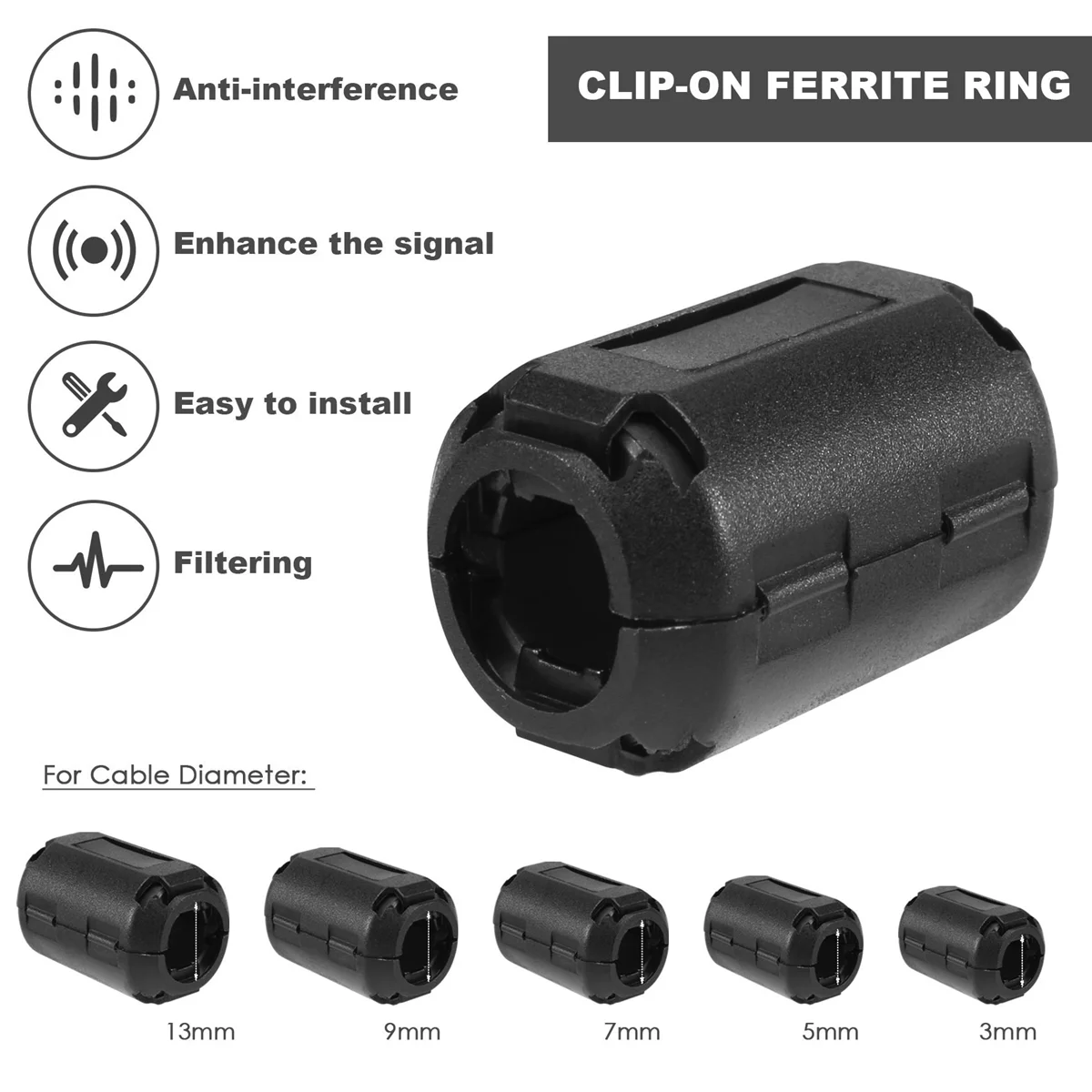 | Structure facile et installation pratique | Contenu d’emballage : 20 pièces de noyaux d’anneau de ferrite à clipser |