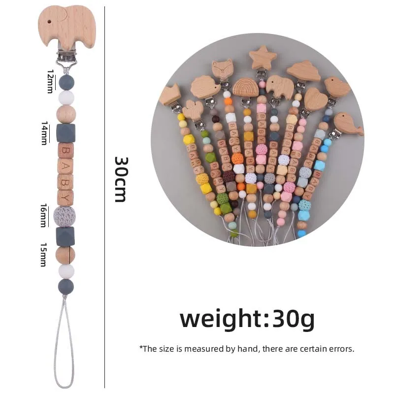 Accrochez le clip de sucette personnalisé à la poussette ou aux vêtements de bébé à l’aide du crochet. Laissez votre bébé jouer avec le jouet de dentition en bois et les perles en silicone pour soulager ses gencives sensibles.