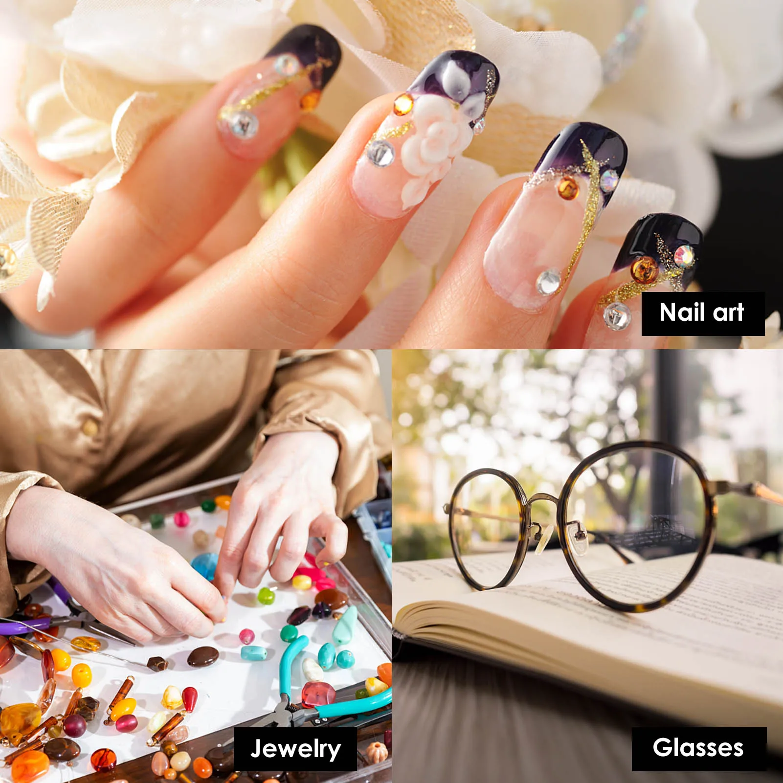 Cette colle artisanale avec pointe de précision est pratique et pratique pour vos strass, pierres précieuses, perles, bijoux ou autres, ce qui rend le processus plus intéressant.