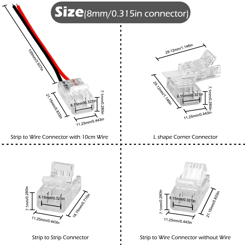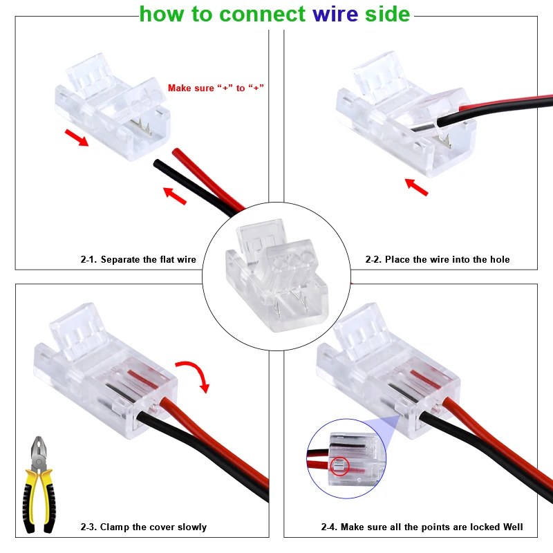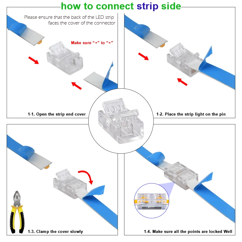 Grâce aux clips à pince fixe inclus, l’installation de ce connecteur est rapide et facile. Les clips sont spécialement conçus pour les bandes LED non étanches, assurant une connexion sécurisée et stable.