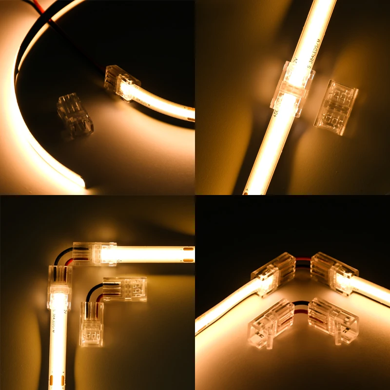 Le connecteur de bandes lumineuses LED COB et fil d’extension terminal est un accessoire pratique pour ceux qui cherchent à connecter et étendre leurs bandes lumineuses LED. Sa compatibilité universelle et sa qualité supérieure en font un choix fiable pour tous vos besoins en éclairage LED.