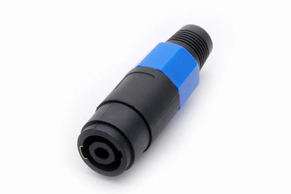 - Les connecteurs de câble SpeakerPNnector sont les connecteurs standard de l’industrie pour les connexions d’amplificateur/haut-parleur. Les connecteurs de câble à 4 pôles ont été conçus pour fonctionner dans un environnement de charge inductive à courant élevé des haut-parleurs