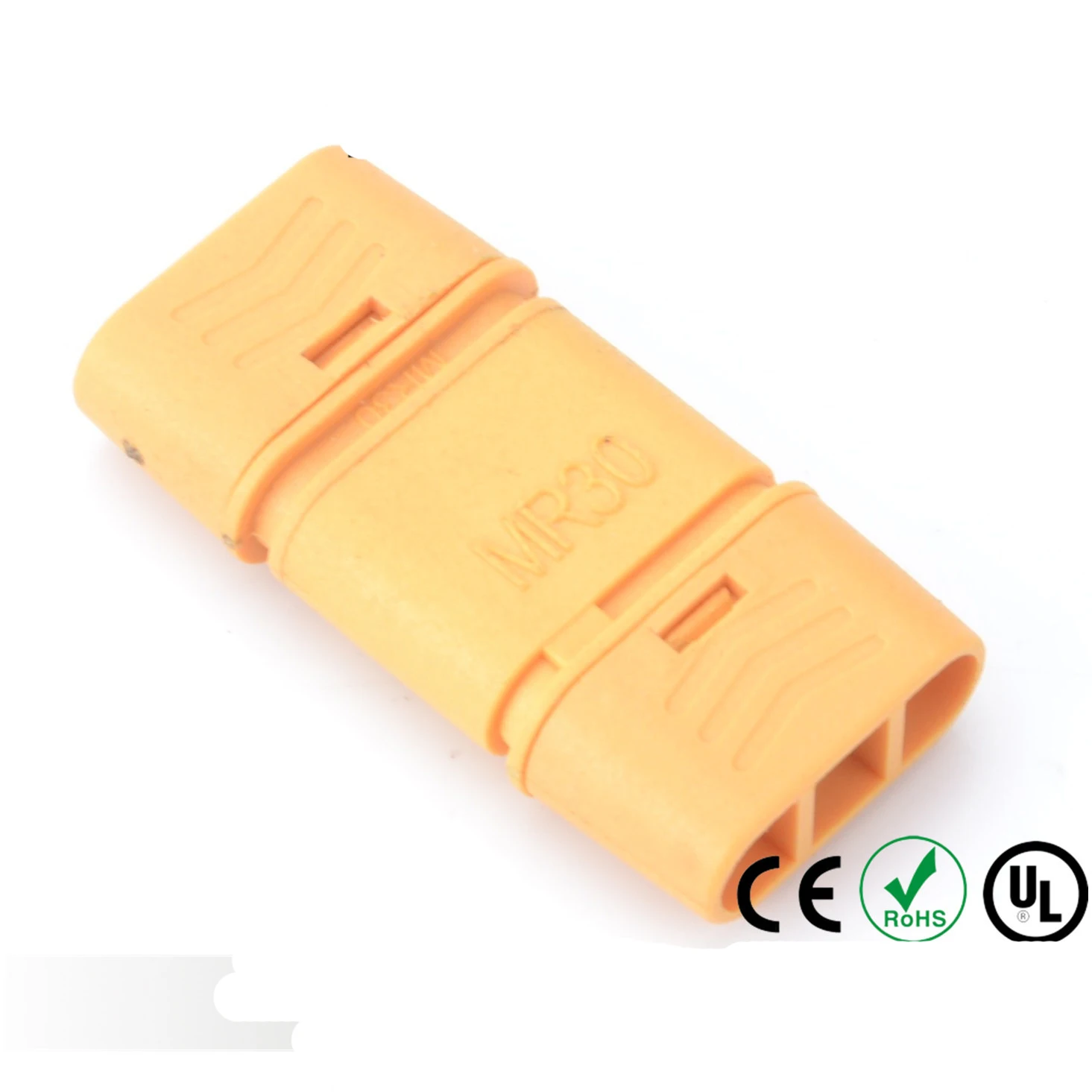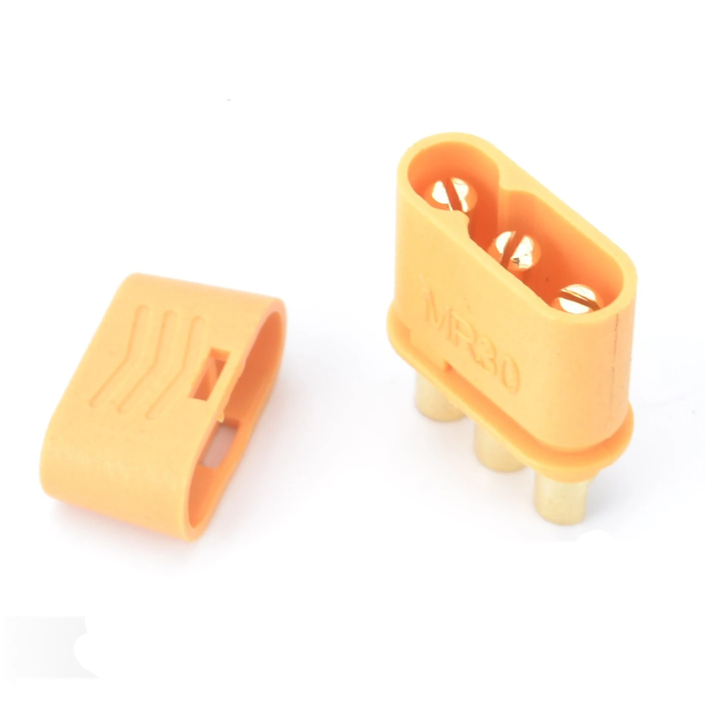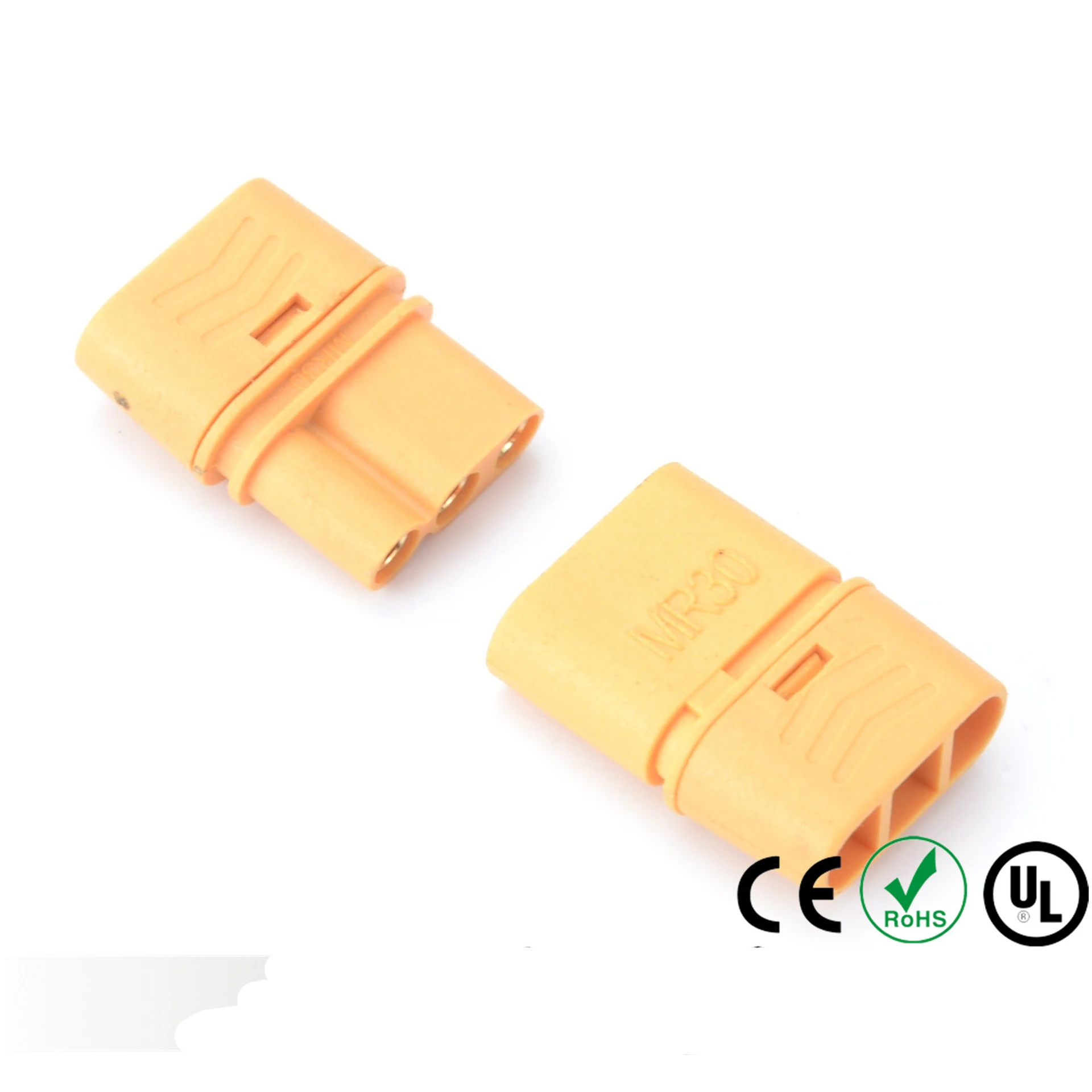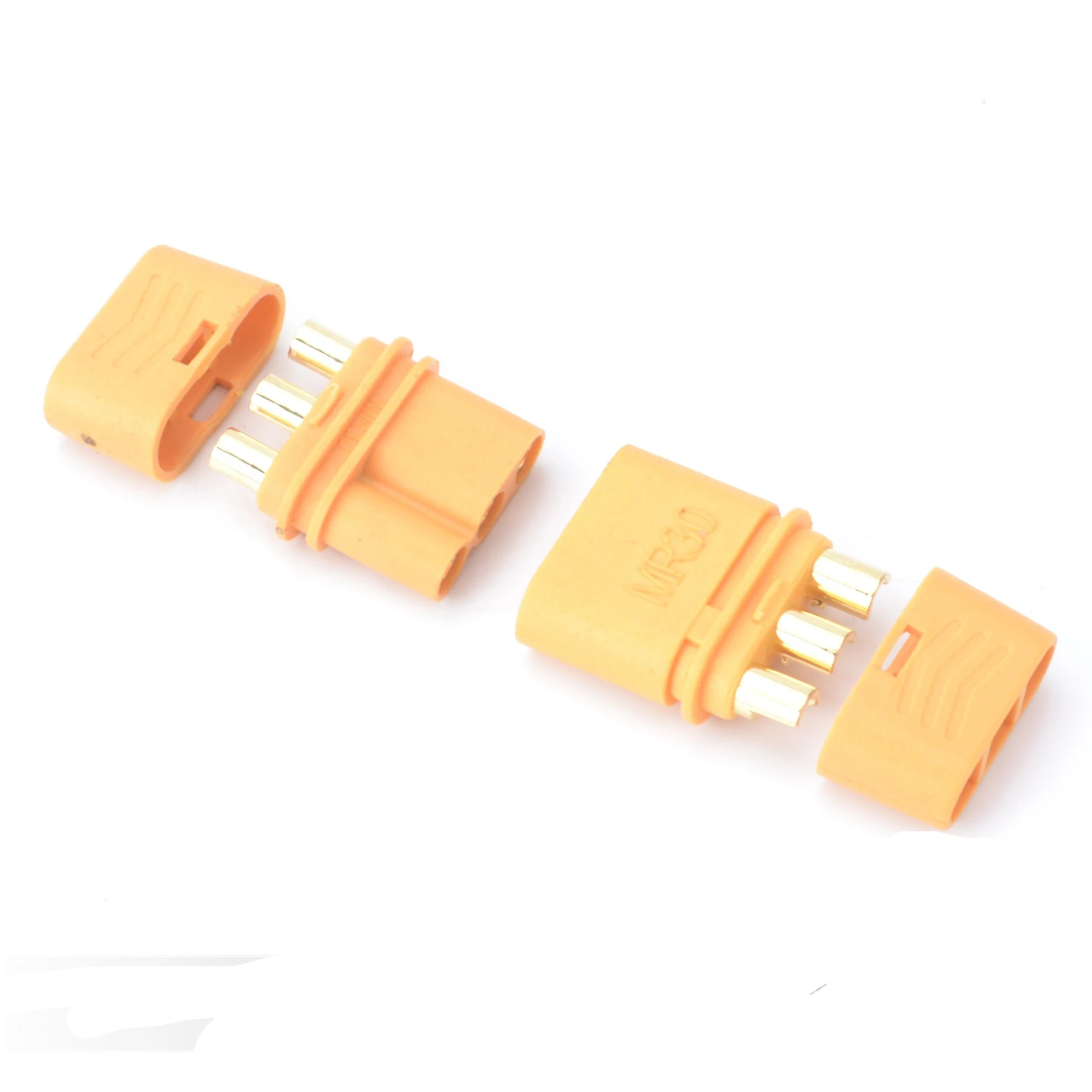 Le connecteur MR30 femelle et mâle pour batterie RC Lipo est idéal pour une utilisation dans les multicoptères et les avions radiocommandés. Fabriqué en laiton avec un placage en or, ce connecteur offre une résistance interne faible et une conductivité maximale. Il est livré avec une gaine en plastique pour une isolation et une protection supplémentaires.