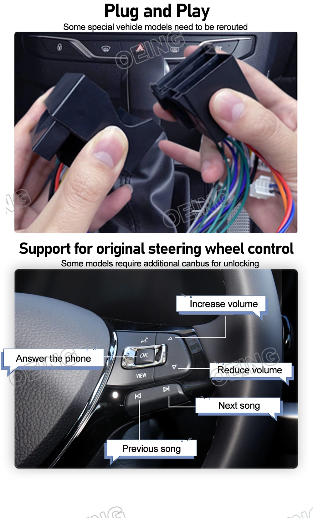 - Toutes les radios prennent en charge la connexion au bouton du volant