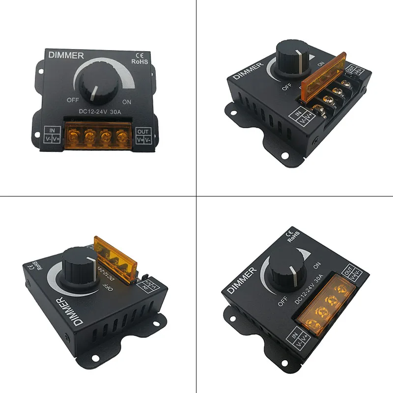 Caractéristiques du DC12-24V 30A Bouton Gradateur Luminosité Réglage Stepless Gradation Commutateur Contrôleur