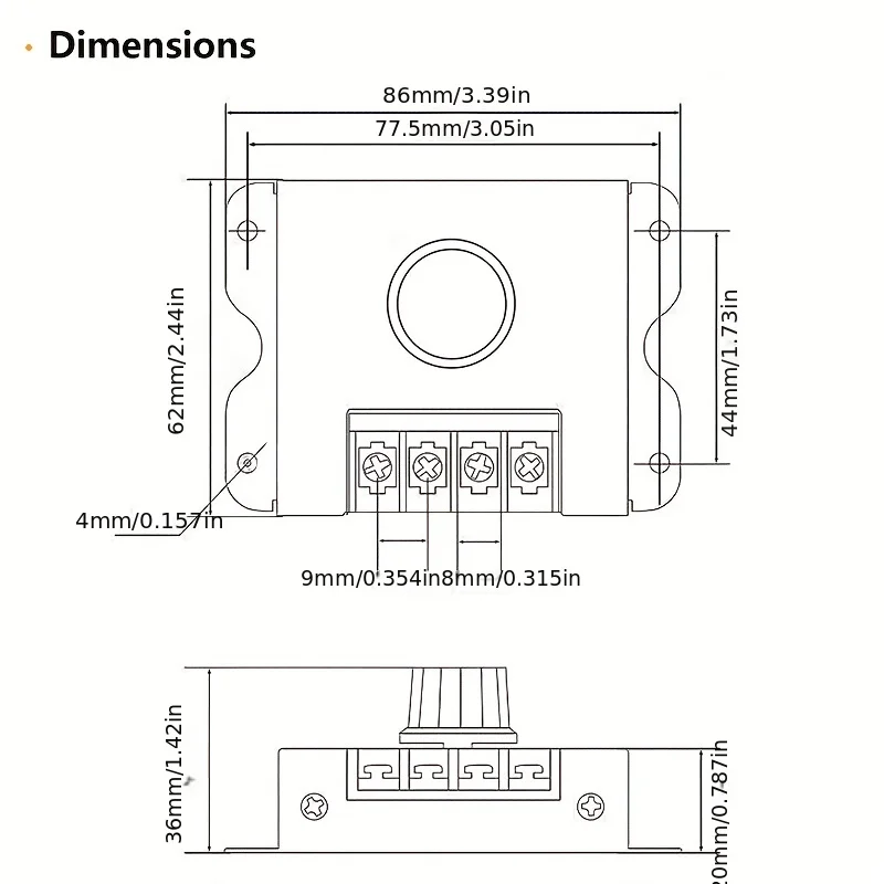 La taille du gradateur est de 85mm (L) x 66mm (L) x 20mm (H).