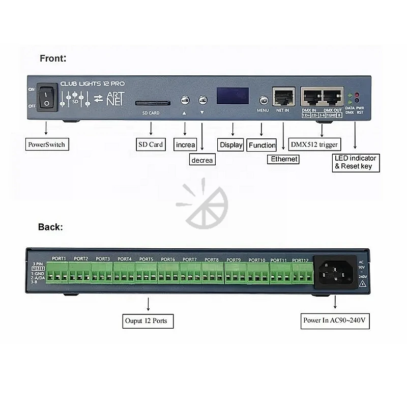 Le contrôleur de bande lumineuse LED adressable est doté d’un processeur FPGA qui garantit une charge élevée, une vitesse élevée, un gris élevé et un contrôle de synchronisation élevé. Il dispose d’un contrôleur de carte SD hors ligne qui permet une utilisation plug and play. L’appareil est équipé d’un écran d’affichage OLED pour afficher les paramètres et le code d’adresse. Il possède également un bouton de réglage rapide du code d’adresse et des paramètres.