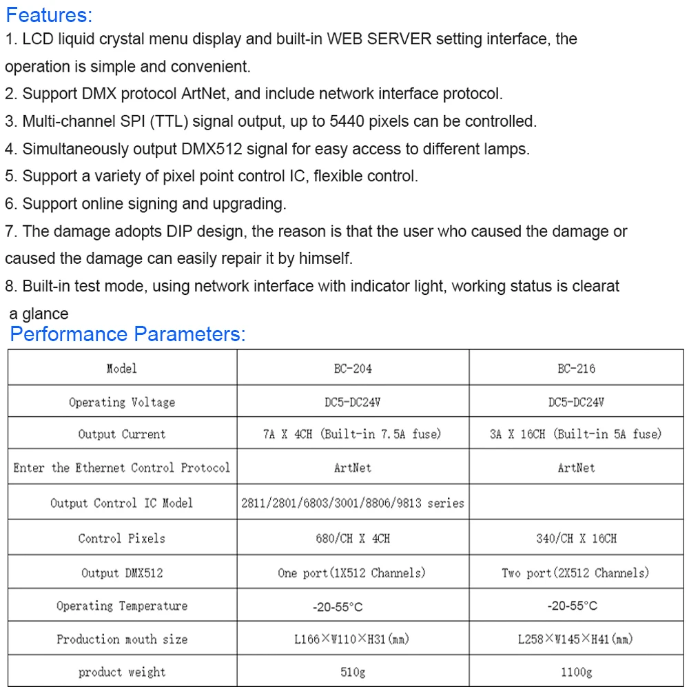 - Il convertit le protocole de contrôle basé sur Ethernet dans les numéros de contrôle de diverses puces de lampe de pixel.