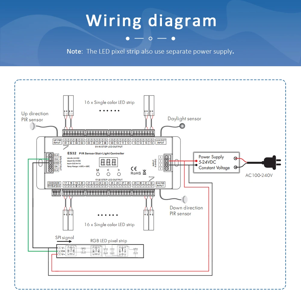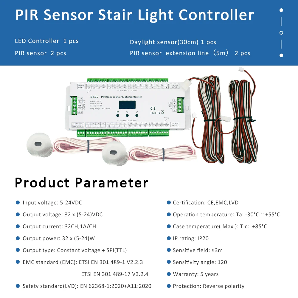 1 * ES32 PIR capteur lumière d’escalier contrôleur