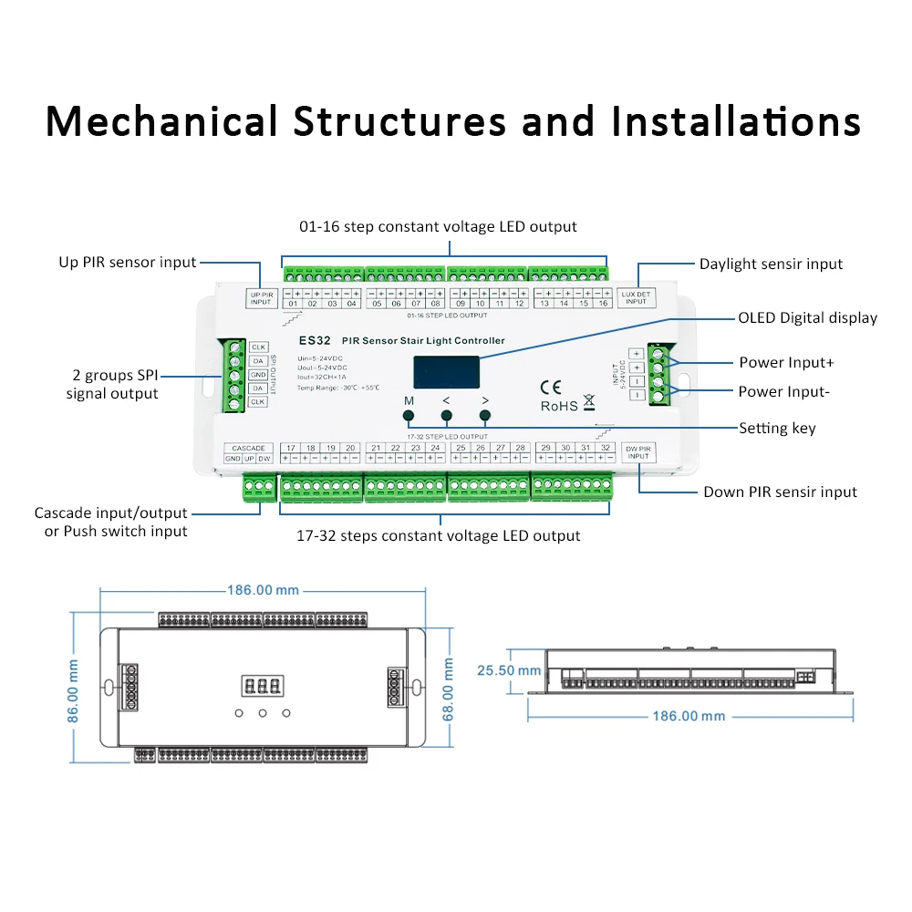 ● Bande LED basse tension d’entraînement de sortie à tension constante de 32 canaux, courant maximum de 1A par canal.