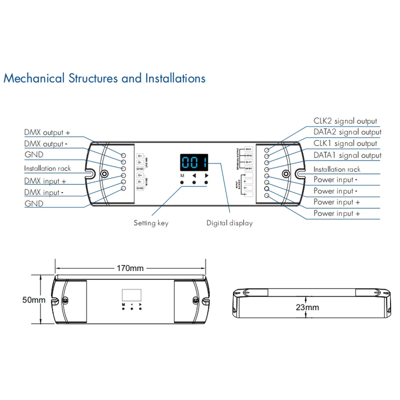 Le convertisseur décodeur LED DMX512 à SPI 5V 12V 24V DMX Slave TTL Pixel Controller est un appareil polyvalent et innovant pour la gestion des bandes LED. Il est compatible avec différents types de bande LED numérique IC, tels que 6803, 8806, 2811, 2812, 2801, 3001/9813 IC. Avec ce convertisseur, vous pouvez facilement contrôler la couleur, l’intensité lumineuse et les effets d’éclairage de vos bandes LED.