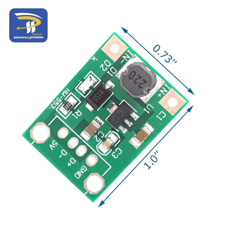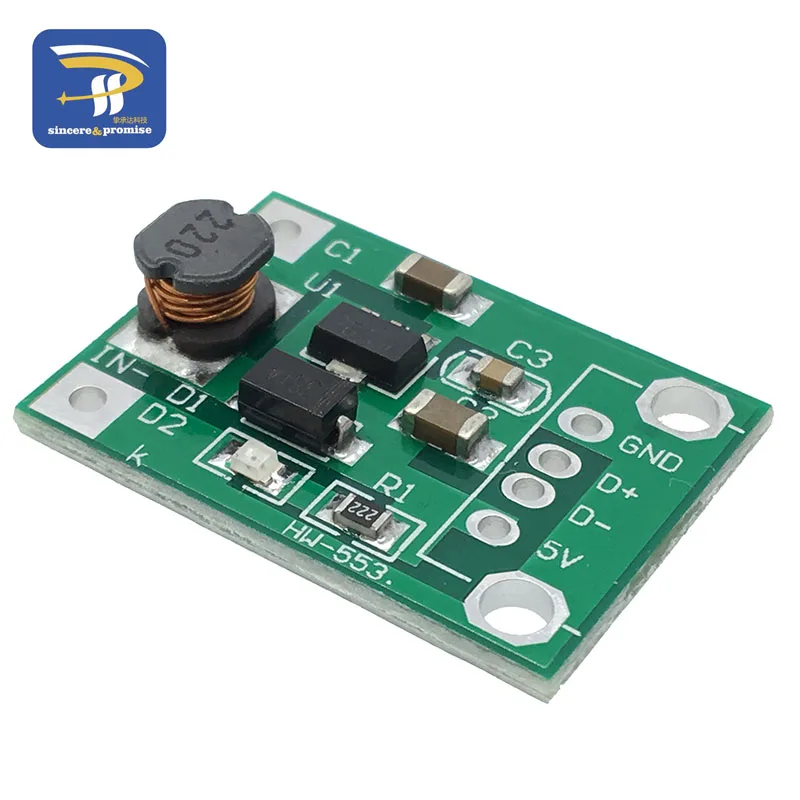 - Entrer n’importe quelle tension CC de 1V ~ 5V, tension CC de sortie 5V est stable, l’entrée au courant de sortie de 500 ~ 600MA avec deux piles AA, une seule batterie AA courant de sortie d’alimentation 200ma environ pour les téléphones mobiles appareil photo, puce unique, approvisionnement en produits numériques.