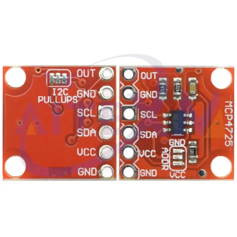 Cette version du CJMCU-MCP4725 Breakout corrige quelques problèmes avec la carte, y compris l’empreinte IC, le brochage I2C, modifie les dimensions globales de la carte pour mieux s’adapter à vos projets, et quelques ajustements mineurs supplémentaires. Cette carte casse chaque broche dont vous aurez besoin pour accéder et utiliser le MCP4725, y compris les broches GND et Signal OUT pour vous connecter à un oscilloscope ou à tout autre appareil que vous devez connecter à la carte. Vous trouverez également à bord SCL, SDA, VCC et un autre GND pour votre brochage I2C de base. De plus, si vous cherchez à avoir
