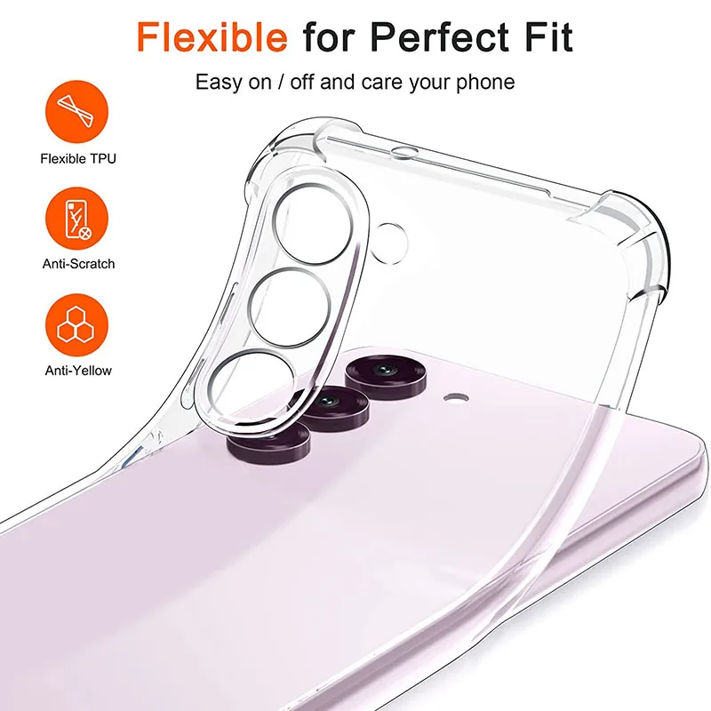 La coque arrière fine et transparente pour Samsung Galaxy est un accessoire de haute qualité spécialement conçu pour les modèles S24, S23 Ultra, S22, S21, FE, S20 Plus, Note 20 Ultra, A53, A54, A52 et A13. Fabriquée en TPU, elle protège efficacement votre téléphone portable contre la poussière, la saleté, les chocs et les rayures.