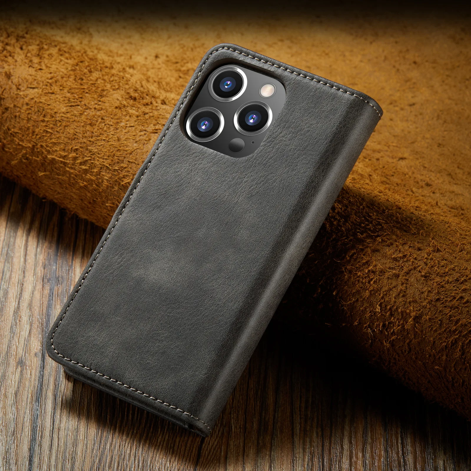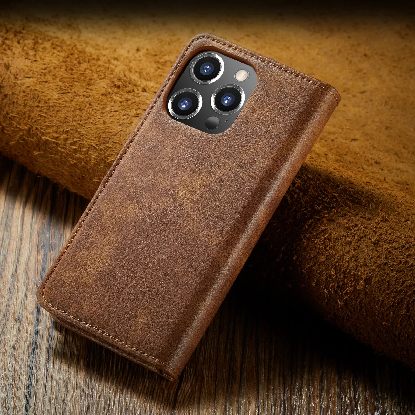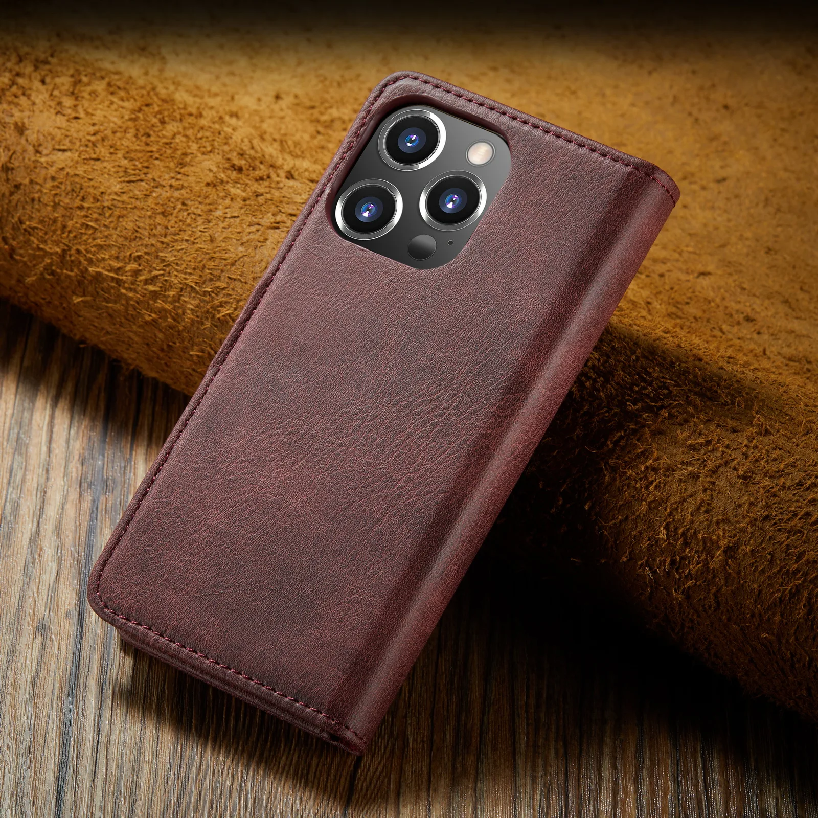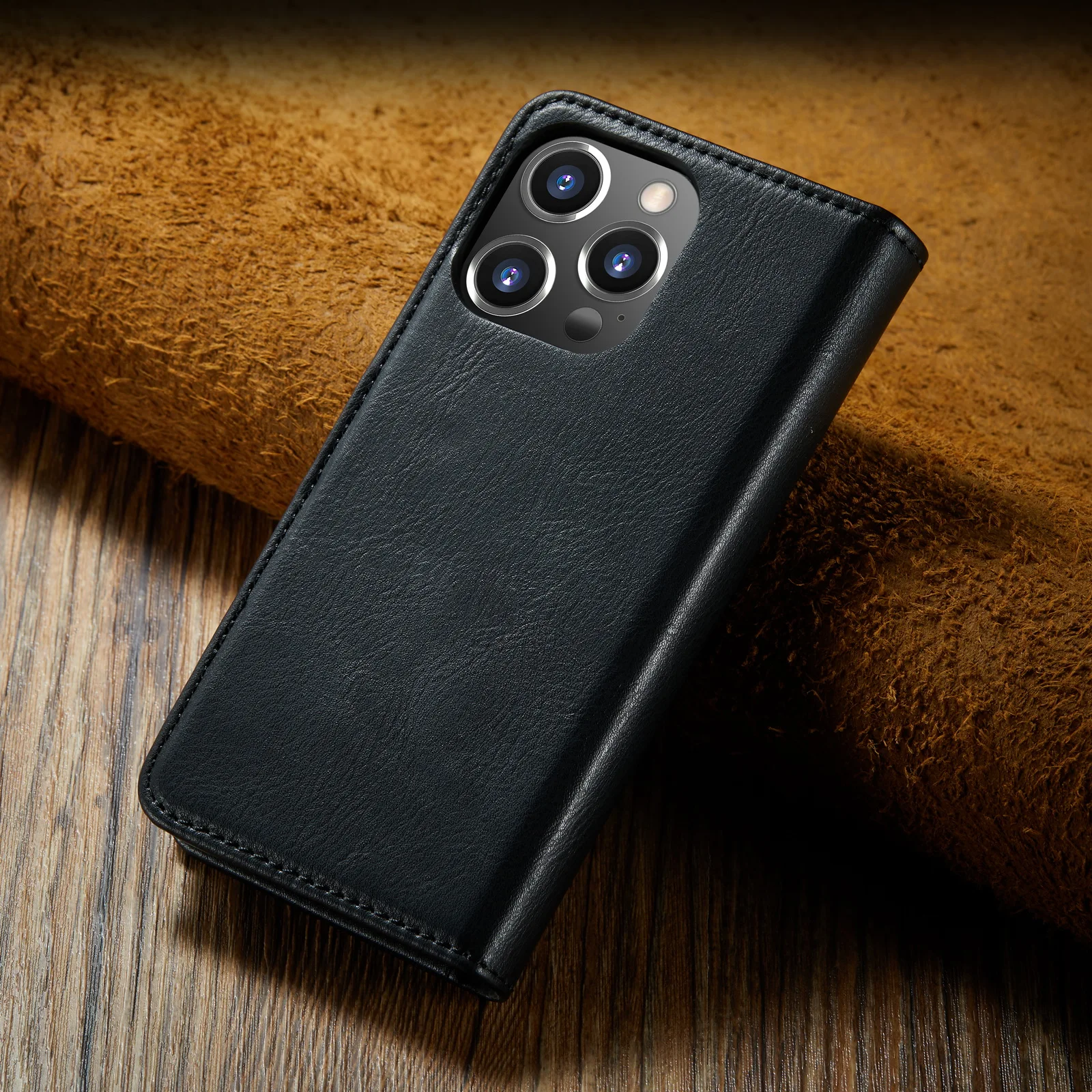 - Cuir à rabat : La coque est fabriquée en cuir de haute qualité et dispose d’un rabat pour protéger l’écran de votre iPhone.
