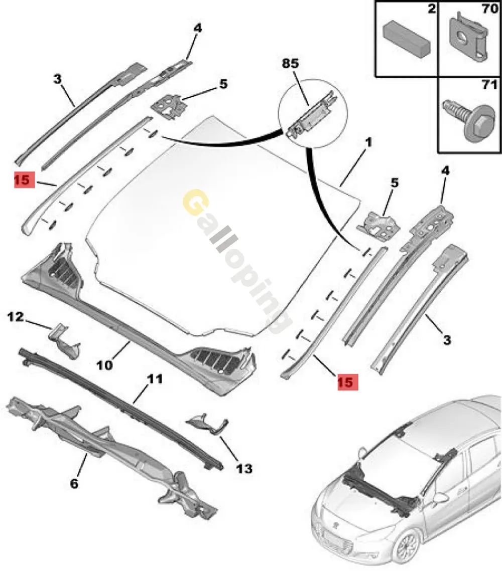 Le couvercle de moulage de pilier latéral de pare-brise droit convient aux modèles suivants :