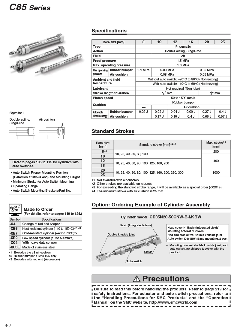 Cylindre pneumatique Standard à Double action, type smc iso, cylindre à Air C85, tige unique CD85N, alésage 8 10 12 16 20 25mm, course 10-200mm