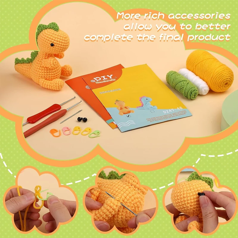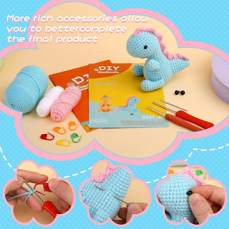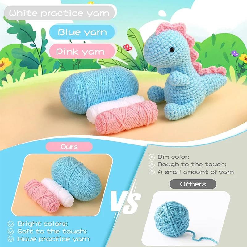 - Facile et mignon: tricoter le dinosaure mignon avec du fil est une chose belle et amusante à faire. Le kit de fil de crochet est également très sympathique pour les débutants. Pas beaucoup d’outils compliqués, suivez les instructions et vous allez rapidement tricoter un animal mignon.