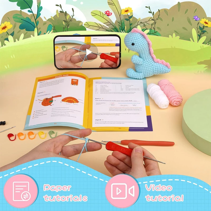 - Nos ensembles de crochet sont livrés avec des instructions et des vidéos pour vous apprendre à faire des animaux mignons, avec des étapes très détaillées et faciles à apprendre.