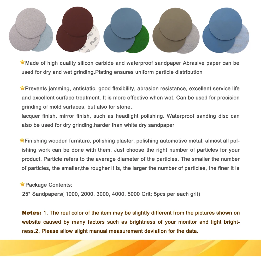 25 pièces ensemble de disques abrasifs (5 tailles au choix)