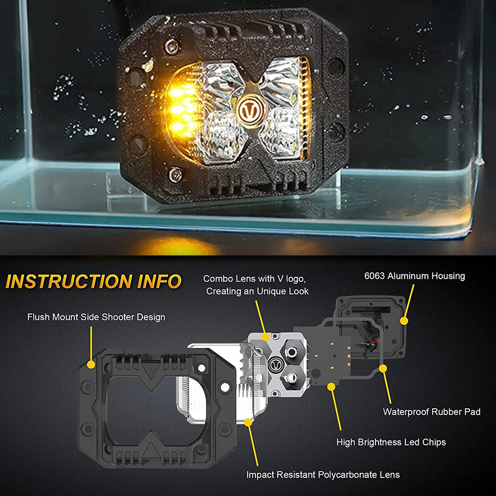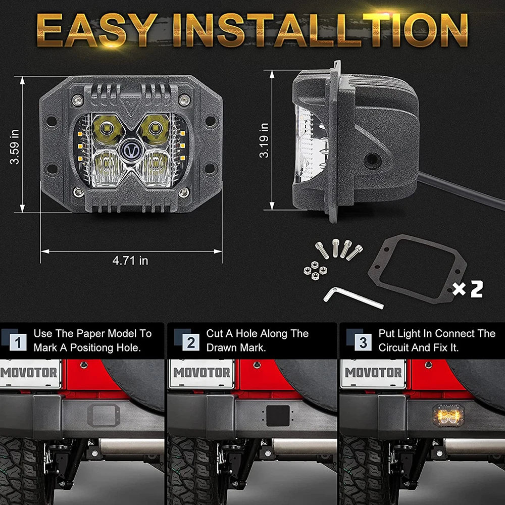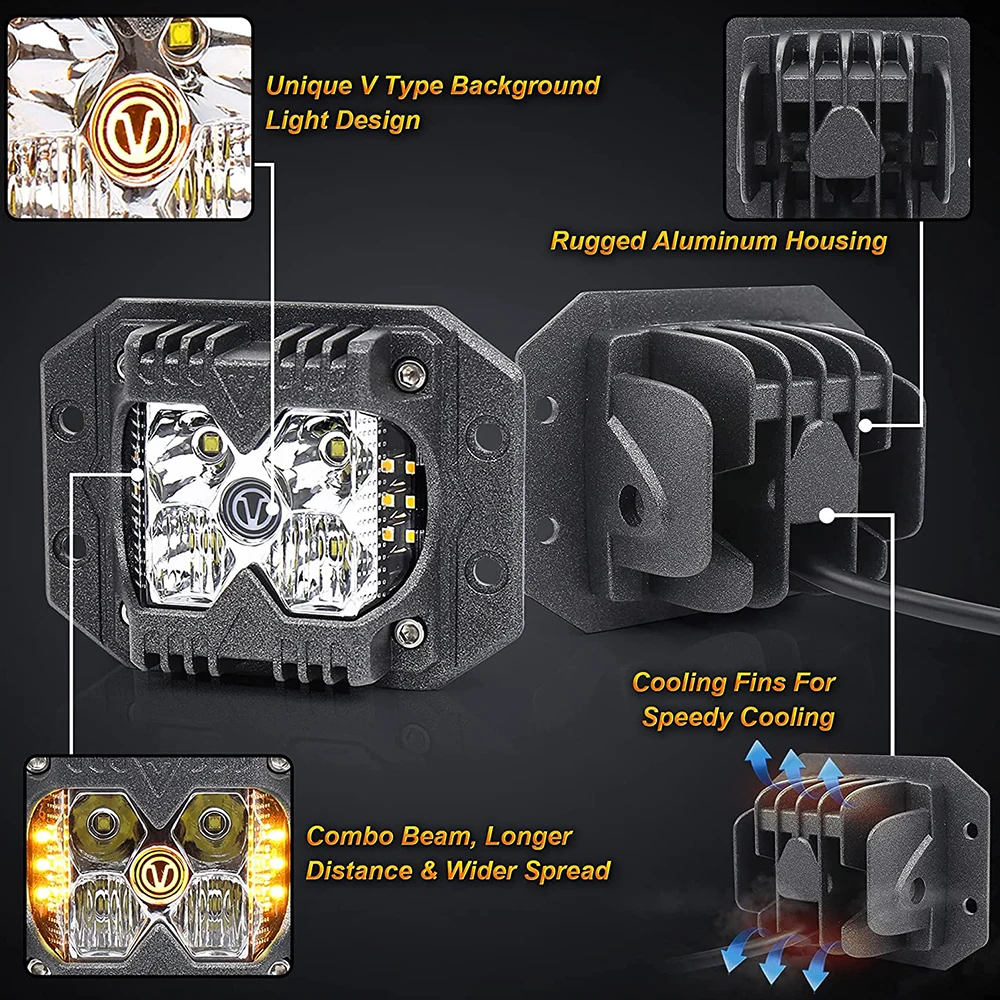 Les dosettes LED encastrées pour voiture avant et arrière sont parfaites pour les camions, les pare-chocs de voiture et les bateaux. Elles offrent une visibilité à haute intensité grâce à leurs deux pods de LED latéraux et leurs tasses de projecteur de profondeur moyenne. Les feux de conduite fournissent 40w et 3000 lumens pour un éclairage fiable et efficace, sans aucune tache sombre. Les feux de jour et la fonction flash stroboscopique en option garantissent une conduite en toute sécurité.