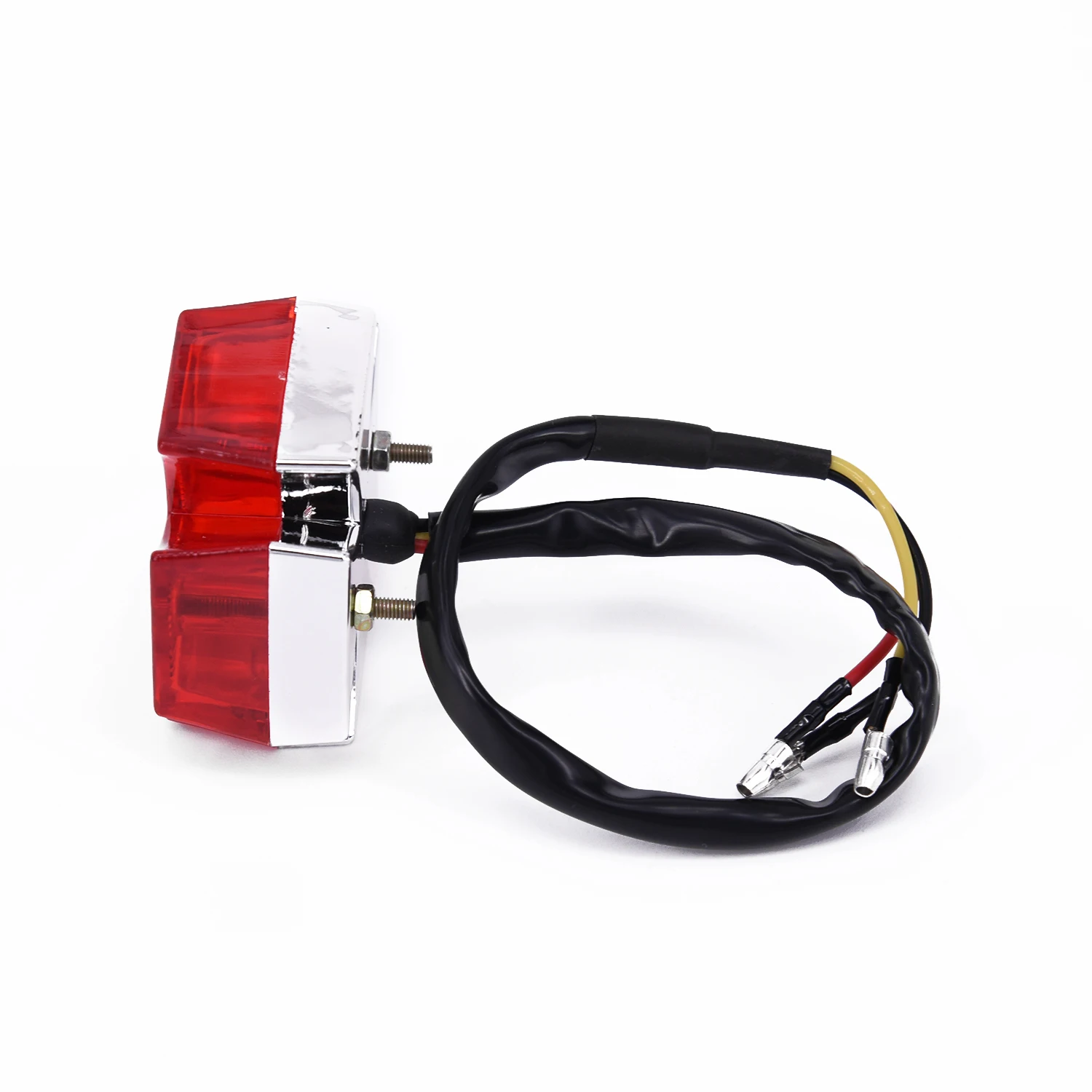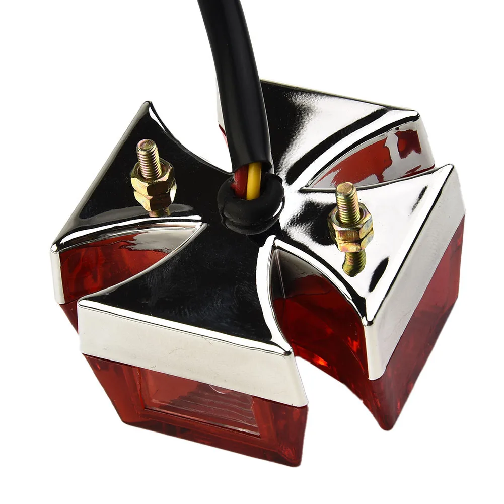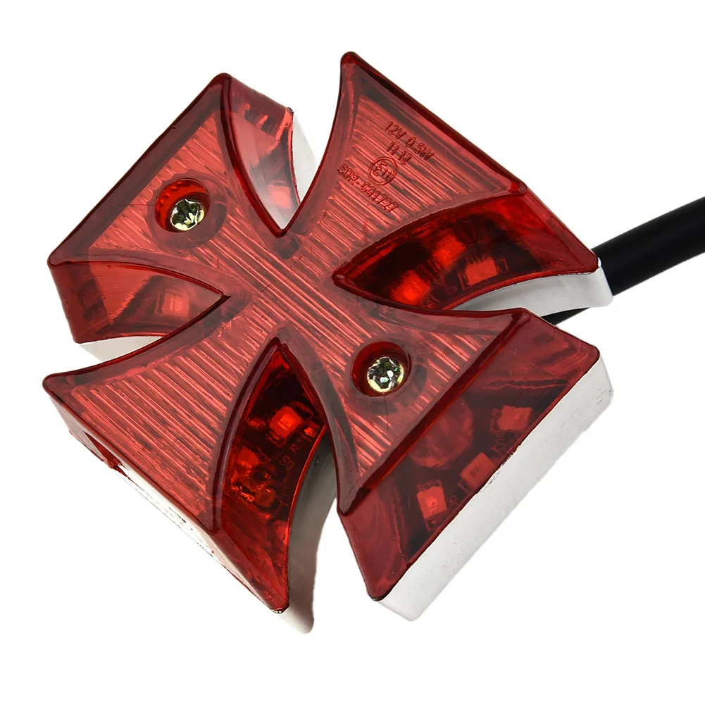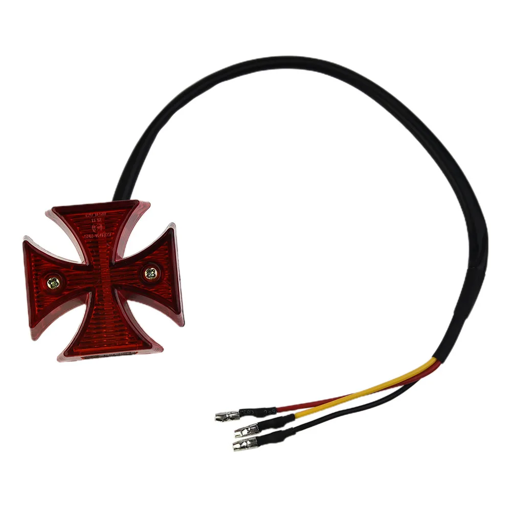 Le Enquêter arrière LED universel pour moto est un feu arrière en forme de croix maltaise classique qui donne à votre moto un aspect distinctif. Il est tout neuf et de haute qualité. Ce feu arrière est intégré avec fonction frein, course et éclairage de plaque d’immatriculation, ce qui en fait une option pratique pour la plupart des vélos et motos, qu’ils soient double sport, choppers, motos tout-terrain ou quads. La connexion se fait à 3 fils et il est facile à installer même sans instruction. Notez cependant que des modifications mineures peuvent être nécessaires.