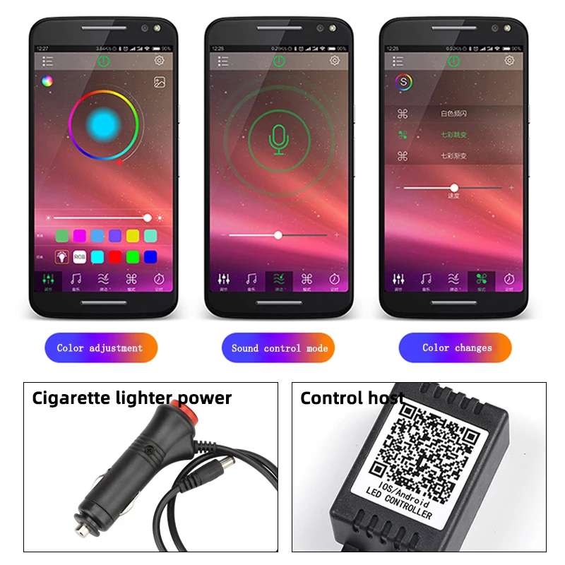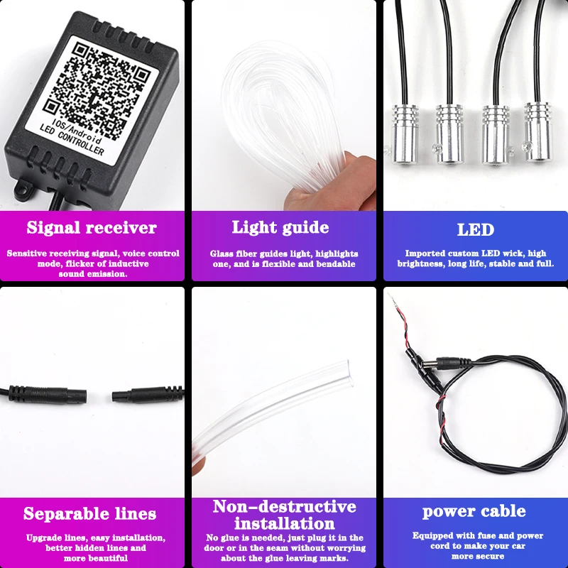 Les bandes de fibre optique LED pour voiture offrent un éclairage intérieur personnalisable et divertissant. Avec le contrôle d’application sur votre téléphone, vous pouvez choisir parmi une variété de couleurs RVB et de modes d’éclairage pour créer l’ambiance parfaite dans votre voiture. Vous pouvez également synchroniser la lumière avec la musique pour une expérience encore plus immersive.