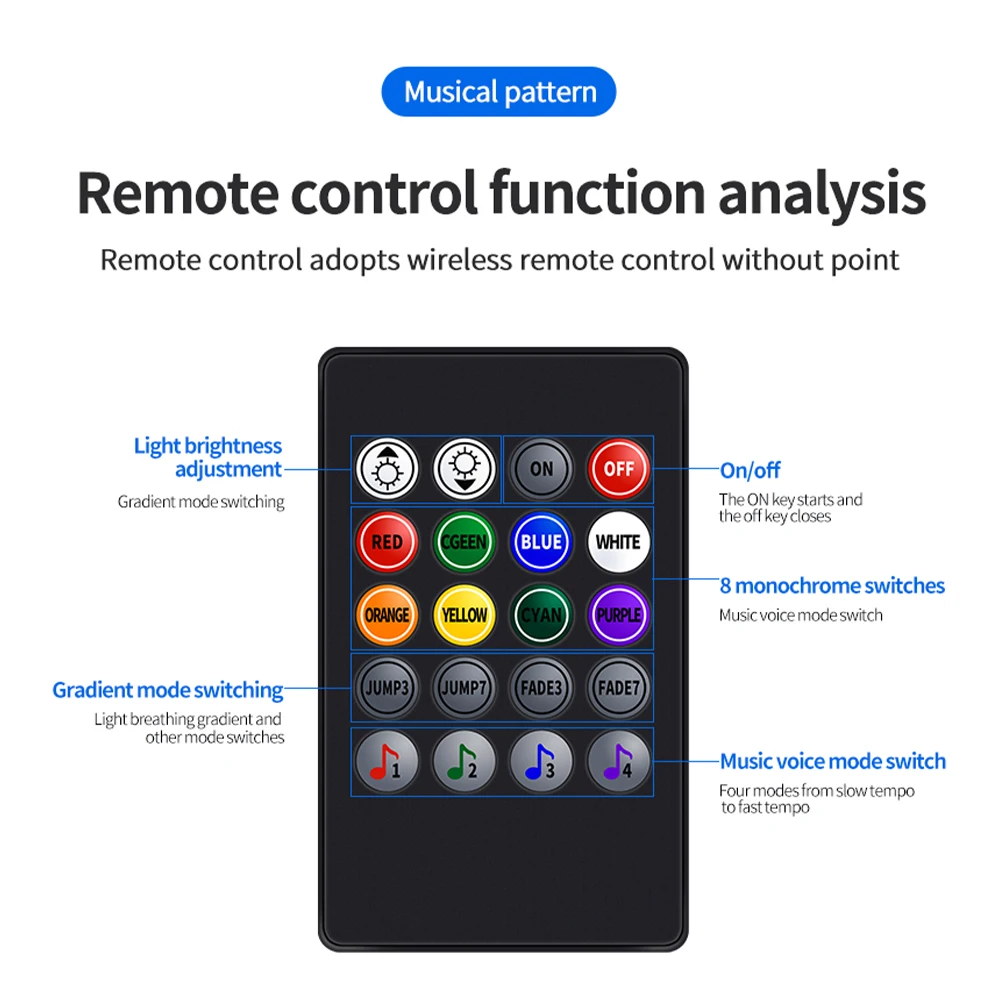 - Kit d’éclairage intérieur RVB 7 couleurs sans fil pour le contrôle de la musique