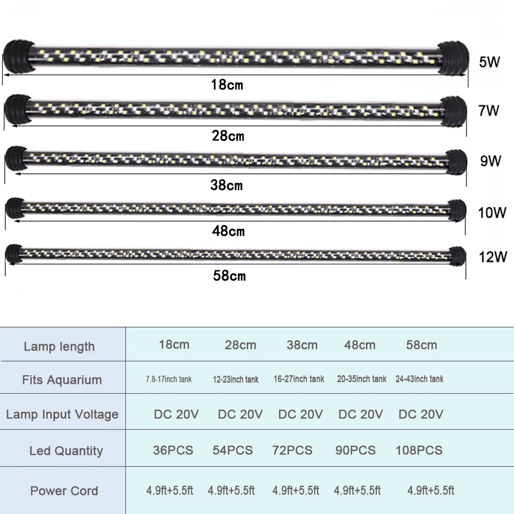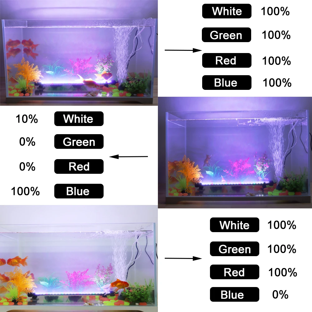Comprend une lumière blanche 6500k, une lumière rouge, une lumière verte et une lumière bleue pour favoriser la croissance des poissons et des plantes aquatiques. Convient à tous les réservoirs d’eau douce.
