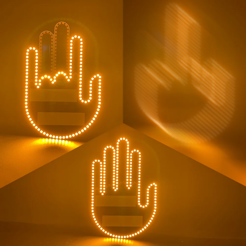 La nouvelle lumière de doigt de voiture de lumière de geste éclairée par LED avec des signes de rage de route à distance est une lampe de main de lumière de geste de doigt moyen. Elle est conditionnée à 100% nouveau et dispose d’une taille OEM. La qualité est haute et elle est certifiée ISO9001. Le MOQ est d’une pièce.