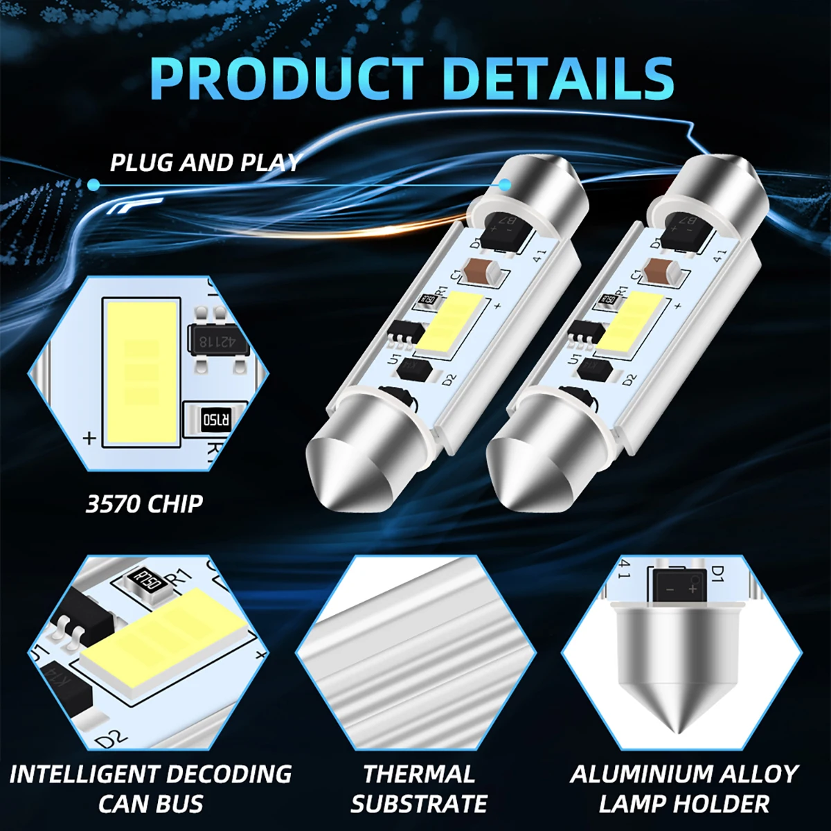 - 2 ampoules LED C5W C10W