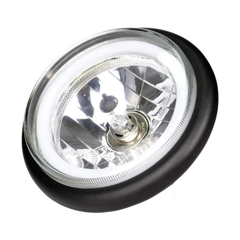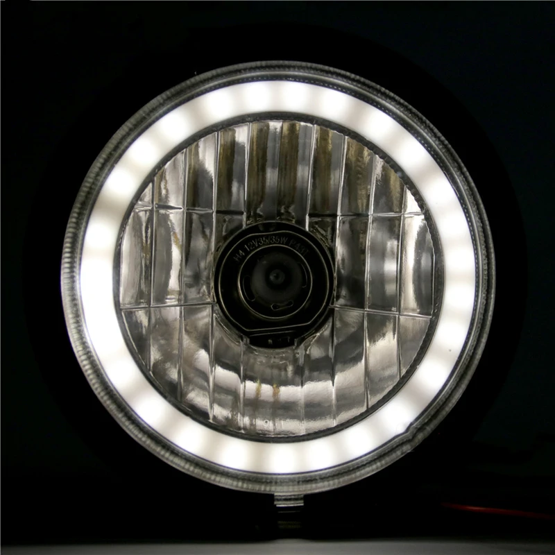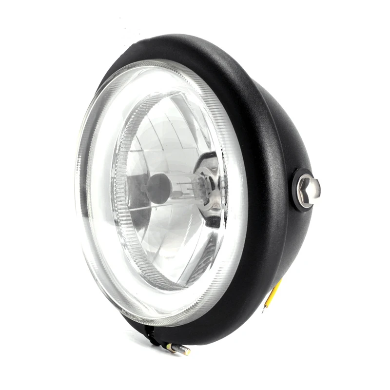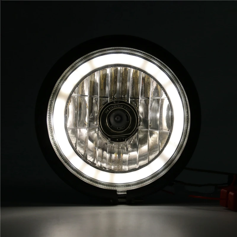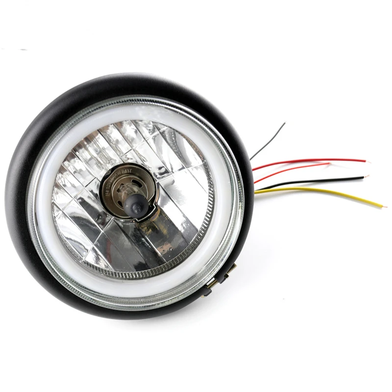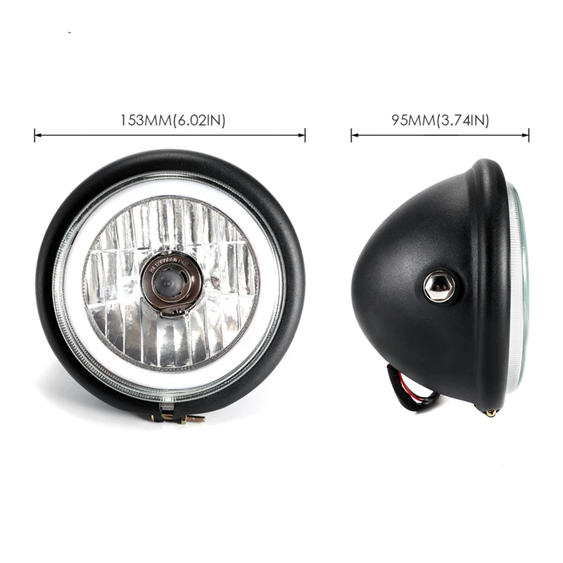 Le phare de moto vintage rond universel est parfaitement adapté aux vélos de route. Il utilise une technologie LED offrant une durée de vie de 100 000 heures, garantissant ainsi une longue durabilité. Le phare central émet une lumière jaune, tandis que les feux diurnes offrent une lumière blanche. La coque du phare est en métal et la lentille est en verre transparent. Ce produit est compatible avec une tension de 12V et possède un câblage simplifié avec 5 fils.