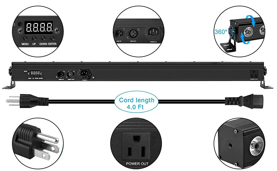 - Mode de contrôle: autopropulsé, contrôle du son, DMX512, gradient