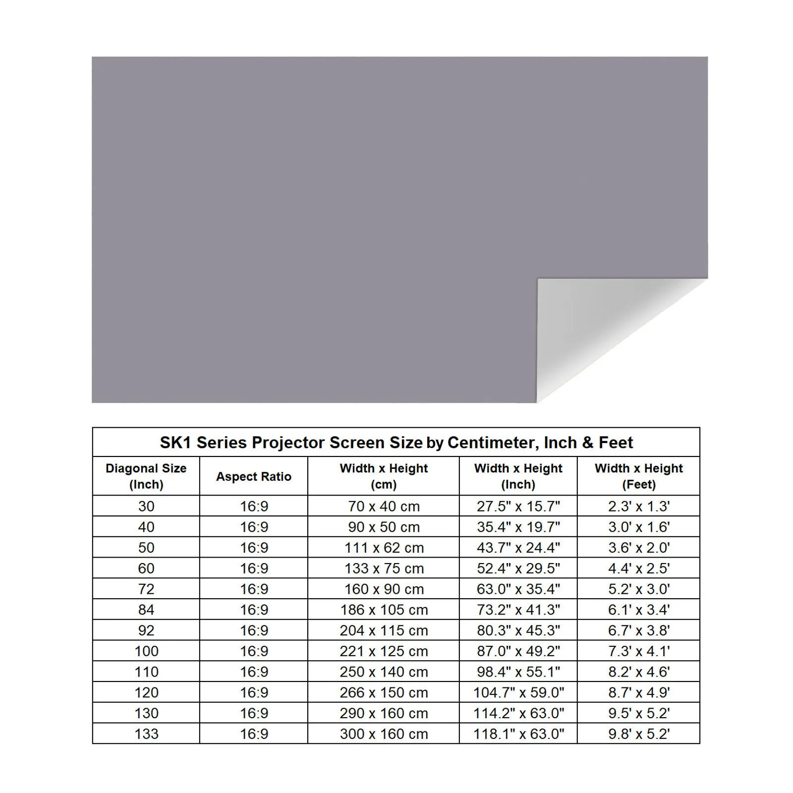 30 40 50 60 72 84 92 100 110 120 130 pouces au choix
