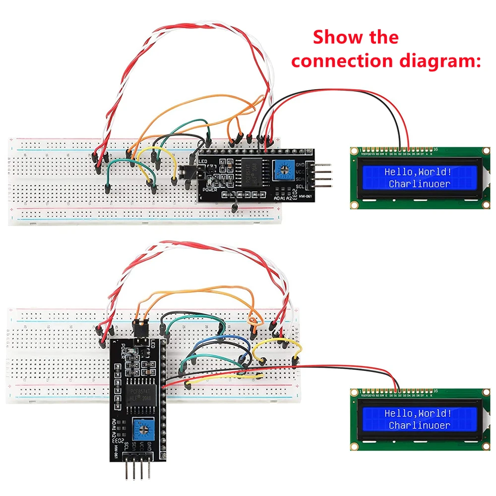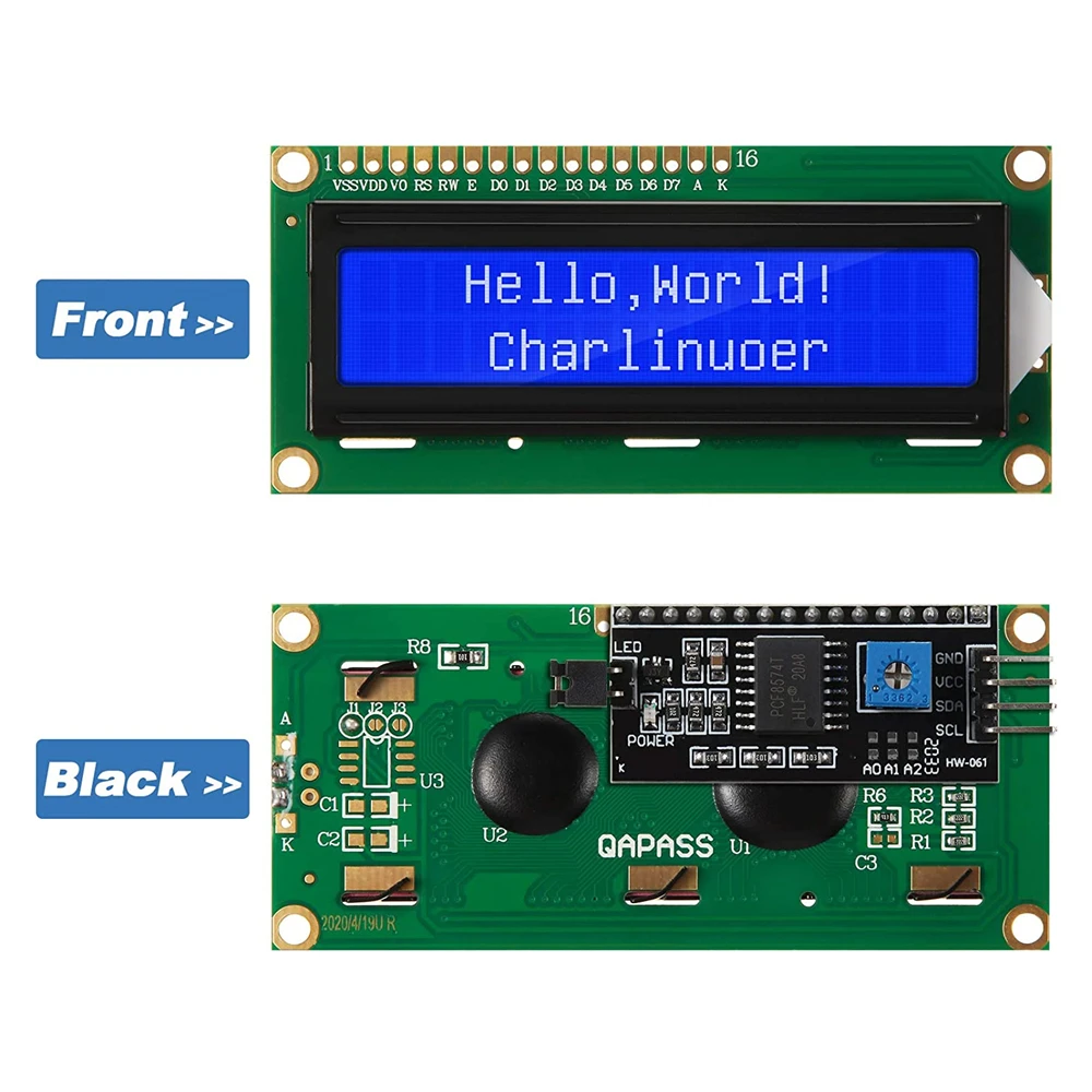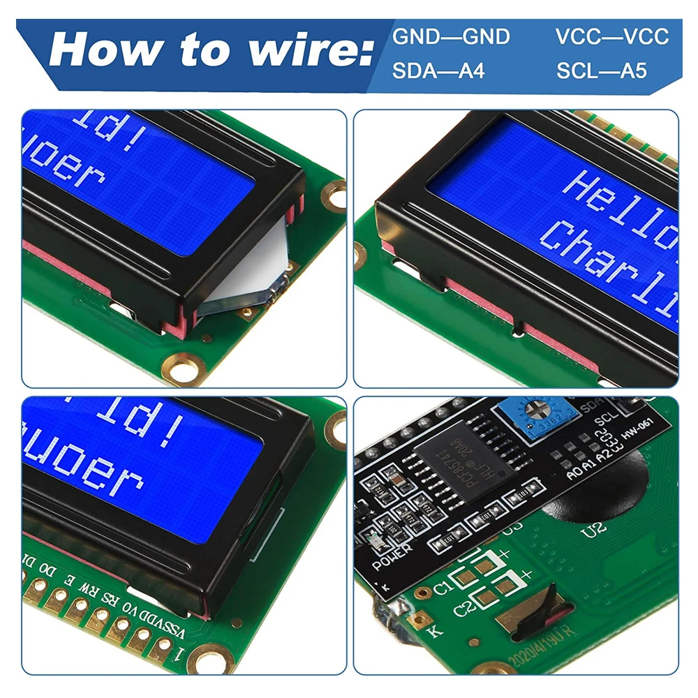 L’écran HOPP1602 utilise une interface I2C 4 fils. Les cartes de contrôle Arduino disposent généralement de seulement 20 ports GPIO, ce qui peut être insuffisant pour de nombreux capteurs, cartes SD ou modules relais. L’écran 1602 d’origine nécessite 7 ports GPIO, mais ce module permet d’en économiser 5.