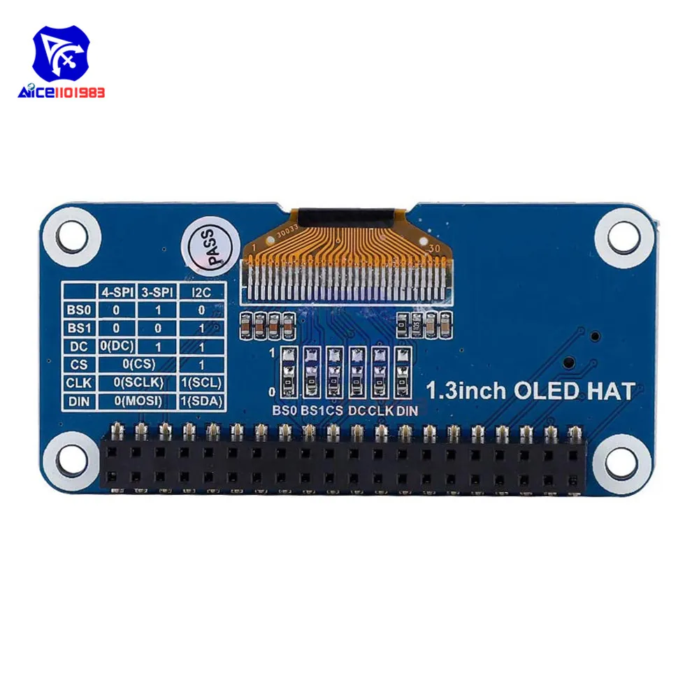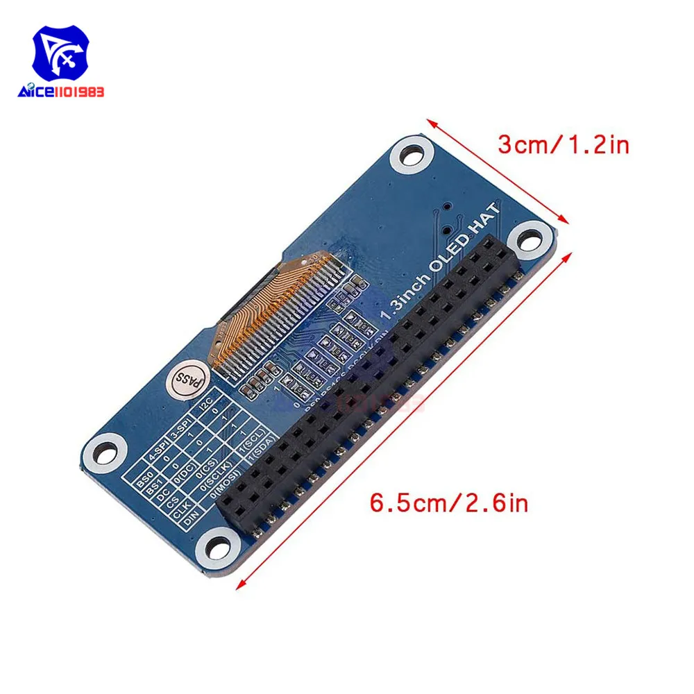 Il s’agit d’un écran OLED HAT pour Raspberry Pi de 1.3 pouces de diagonale et d’une résolution de 128×64 pixels. Il est équipé d’un contrôleur intégré et peut communiquer via une interface SPI ou I2C.