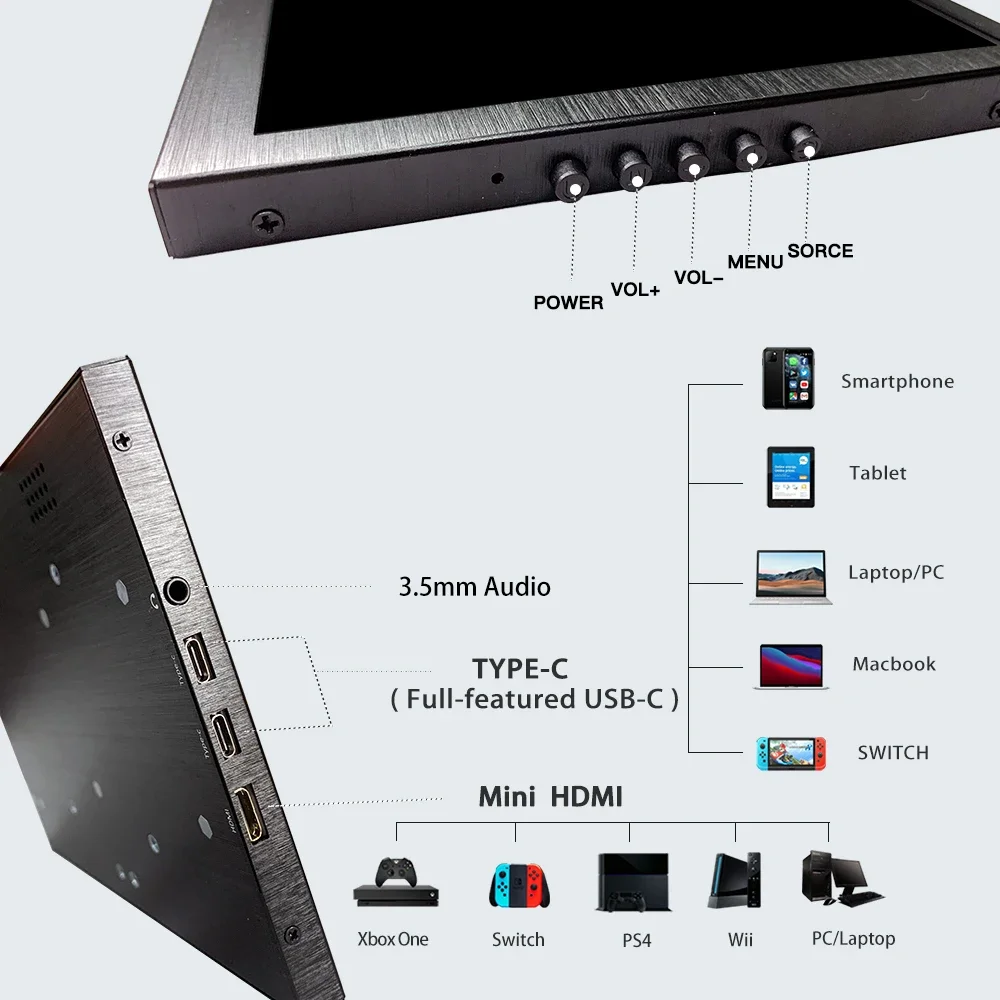 Le moniteur à écran tactile de type C et HDMI offre une taille d’écran de 8.9 pouces, idéale pour une utilisation portable. Que vous soyez un propriétaire de PC ou de Mac, cet écran ultra-large HD est compatible avec les systèmes Windows, Mac et PC. Il peut être connecté à votre ordinateur portable via le port USB C et HDMI.