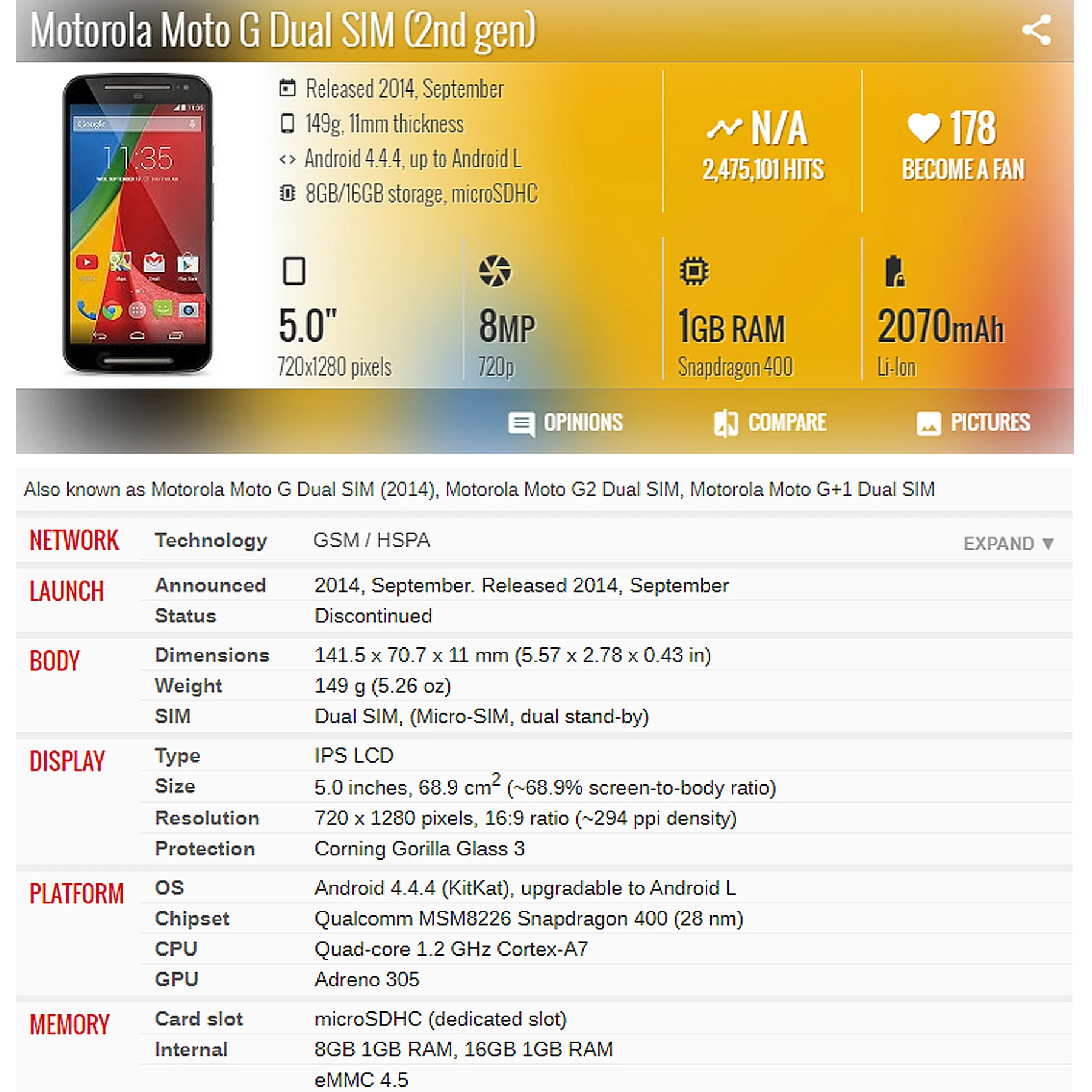 | Modèle | Moto G2 G 2e génération XT1063 XT1064 XT1068 XT1069 XT1072 |