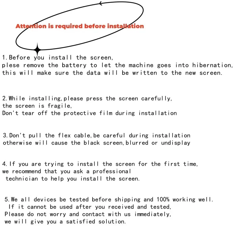 3. Tous les appareils sont testés avant l’expédition et 100% fonctionnent bien. S’il ne peut pas être utilisé après l’avoir reçu et testé, ne vous inquiétez pas et contactez-nous immédiatement, nous vous donnerons une solution satisfaisante.
