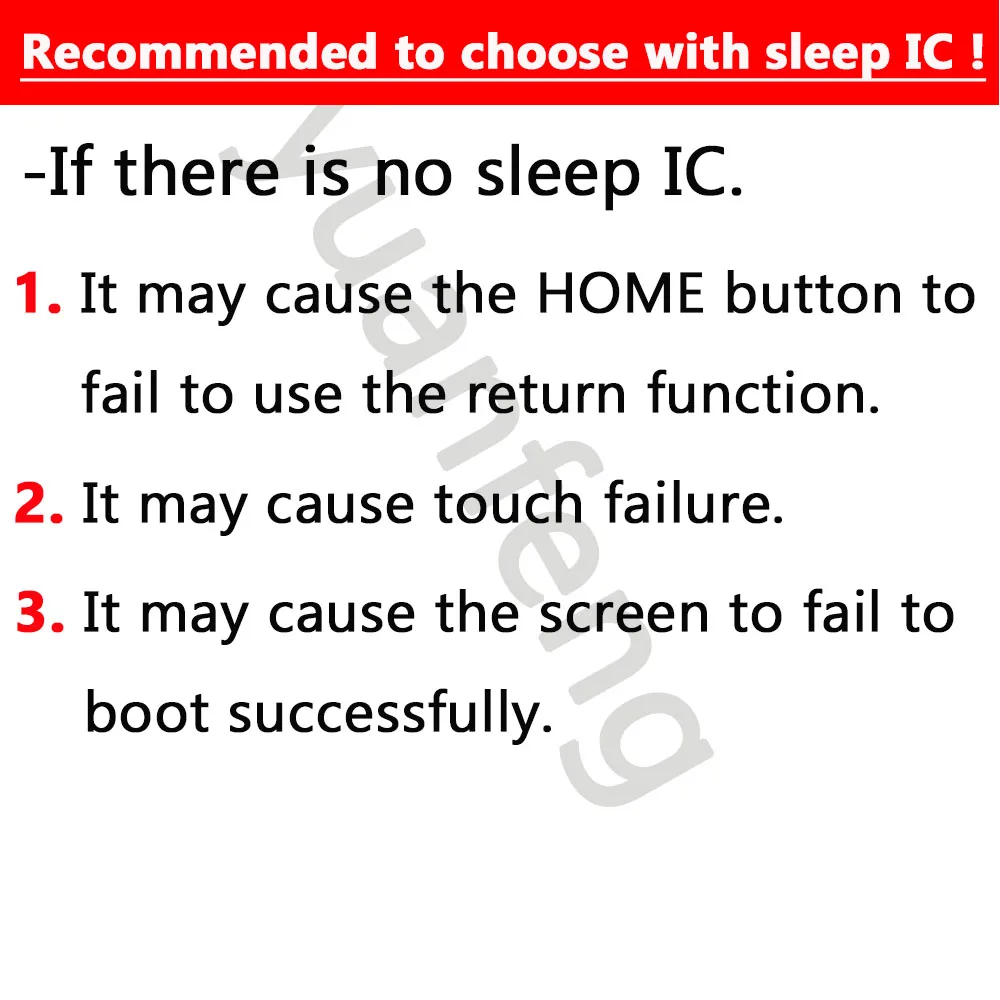 L’installation de cet écran tactile LCD de remplacement peut être complexe pour les personnes inexpérimentées. Il est recommandé de faire appel à une personne ayant une expérience d’installation pour vous aider, afin d’éviter toute erreur d’installation qui pourrait endommager l’écran ou l’appareil.