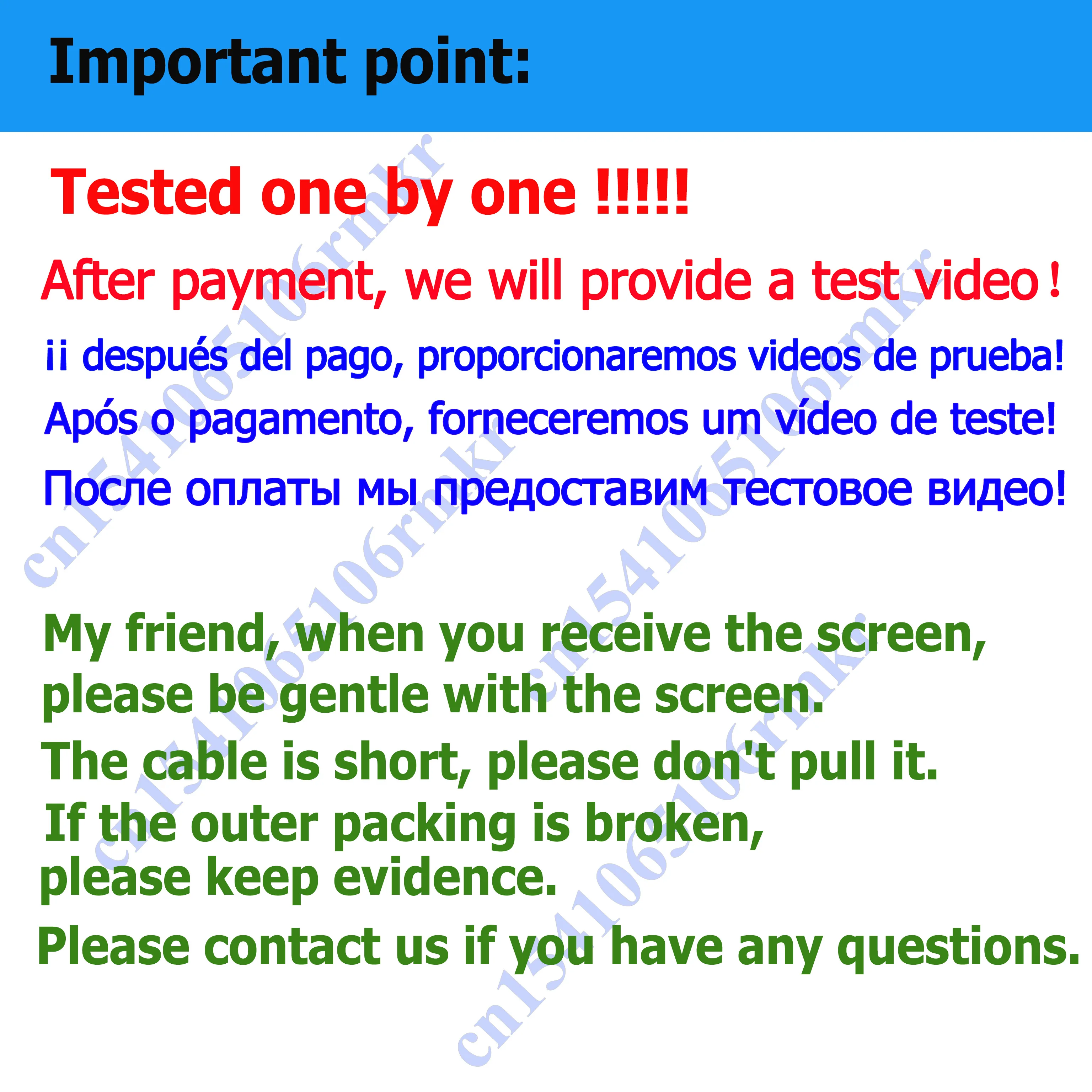 Avant de procéder au paiement, il est important de confirmer l’adresse de livraison et le modèle du produit. Des informations incorrectes peuvent entraîner des erreurs de livraison ou d’incompatibilité. Notez que le vendeur ne pourra être tenu responsable de telles conséquences.