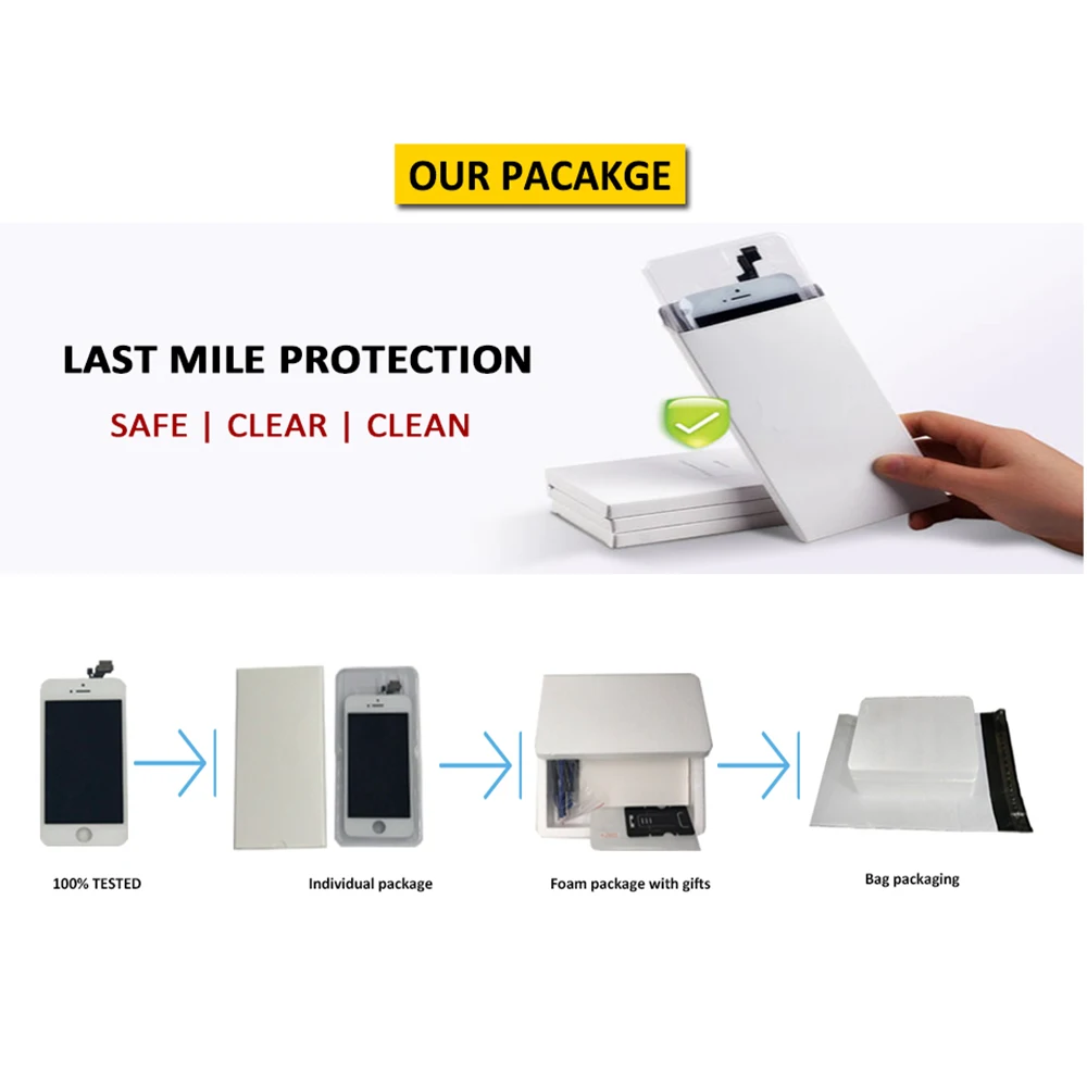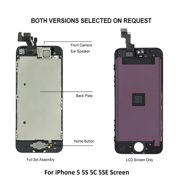 L’écran tactile LCD de remplacement pour iPhone 5, 5C, 5S, SE 2016 est un ensemble complet qui comprend un écran LCD, un numériseur tactile, une caméra frontale et un bouton d’accueil. Le grade AAA garantit qu’il n’y a aucun pixel mort ou spot sur l’écran. L’écran est testé à 100% avant l’expédition pour assurer sa qualité.