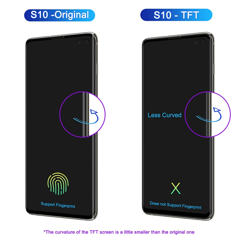 | For Samsung Galaxy S10 G973F G973F/DS G973A G973U G973W G9730 | Noir, Argent, Or, Bleu, Vert, Rouge, Rose | 6.1 pouces | 3040×1440 | Super AMOLED/TFT | Tous les tests sont effectués avant l’expédition | Si vous rencontrez des problèmes lors du test, veuillez nous contacter avant de l’installer. |