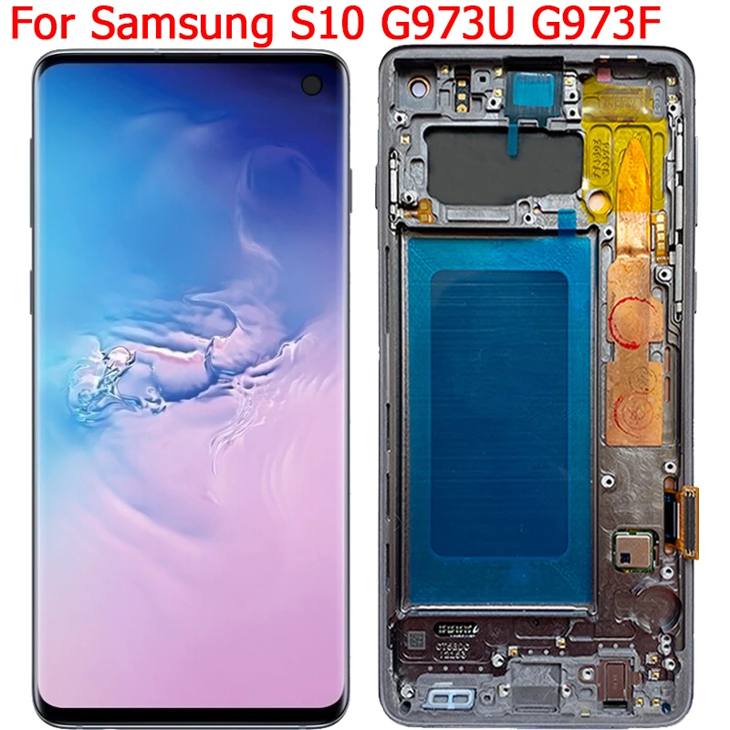 L’écran tactile d’affichage à cristaux liquides avec des pièces de panneau de cadre est spécialement conçu pour Samsung S10. Il convient aux modèles G973F, G973A, G973U, G973F/DS et nouveaux. Cet écran est disponible en différentes couleurs, dont le noir, l’argent, l’or, le bleu, le vert, le rouge et le rose. Sa taille est de 6.1 pouces et sa résolution est de 3040×1440 pixels.