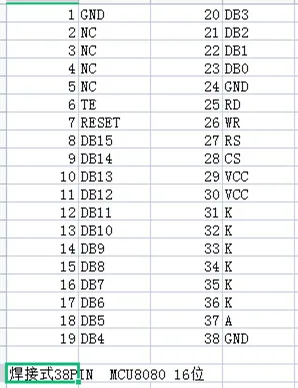- Interface: MCU 16 bits 8080 interface de données