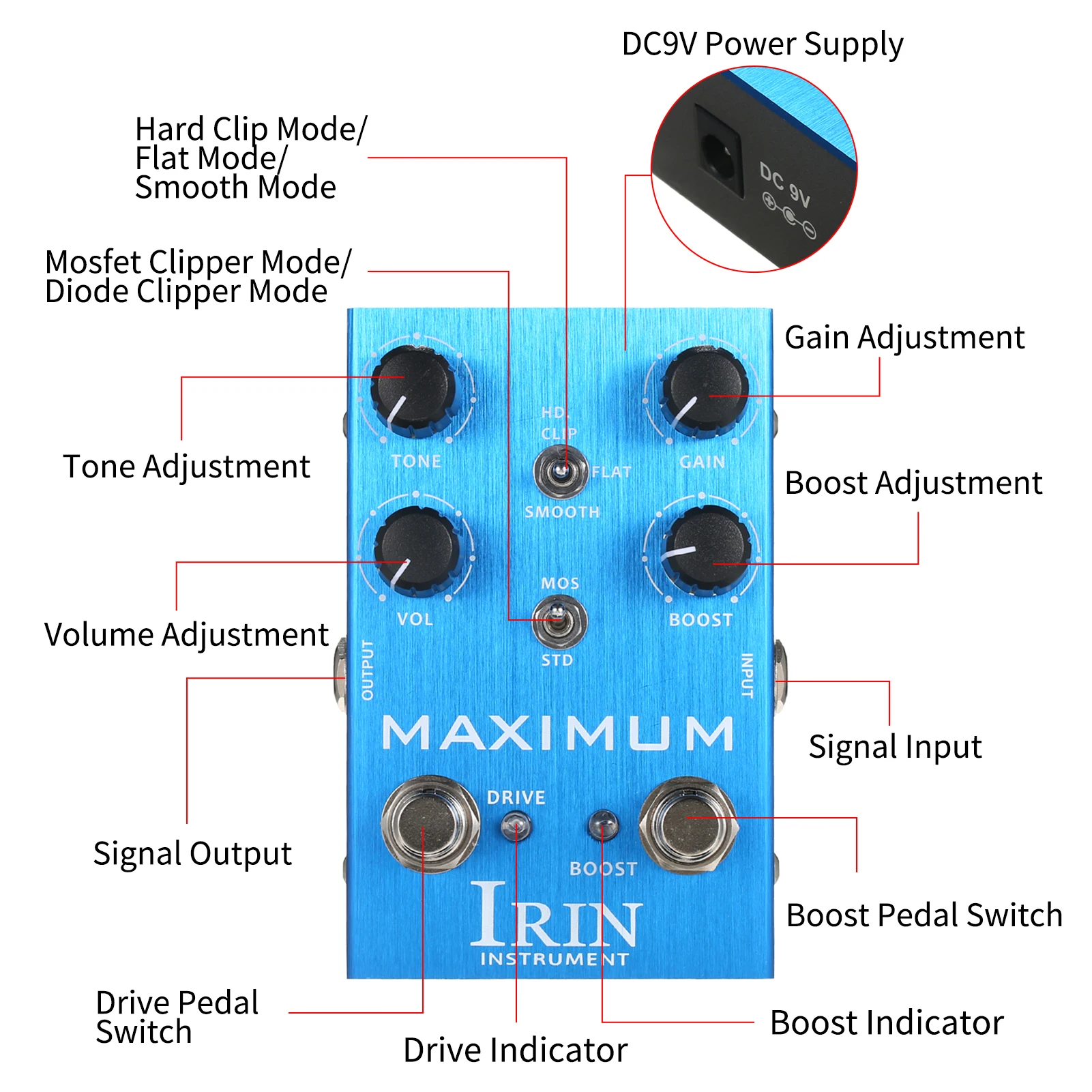 La pédale d’effet IRIN JEEffprotected Overdrive est spécialement conçue pour les guitares électriques JE-MAXIMUM. Elle offre 2 modes interdits, ainsi que des commandes de tonalité, de gain, de volume et de suralimentation. Fabriquée en alliage d’aluminium, cette pédale est à la fois durable et robuste, tout en étant légère et compacte. Son format mini la rend portable et facile à utiliser. De plus, elle est équipée d’un coussinet en silicone antidérapant pour éviter tout décalage ou glissement pendant la performance.