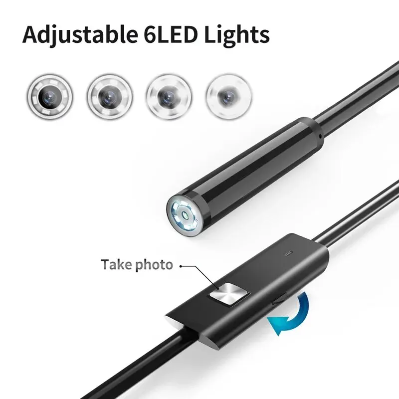 Cet endoscope est compatible avec l’interface Type-C pour les téléphones Android OTG et les MacBooks, ainsi qu’avec l’interface USB pour les PC Windows.