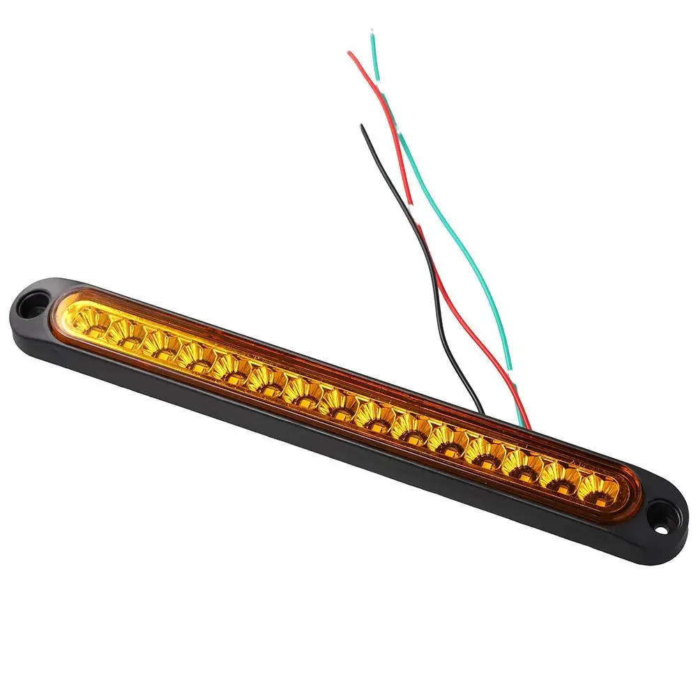 Le feu arrière de frein de remorque à 15 LED est une barre de LED avec des lumières de stop et de virage. Cet assemblage étanche est idéal pour les remorques de voiture et les bateaux marins. Fabriqué avec une lentille scellée en polycarbonate et un boîtier en ABS à fort impact, il offre une grande durabilité. Les 15 LED fournissent une lumière vive et claire. Ce feu arrière est alimenté par une tension de 12V à 24V. Il est facile à installer grâce à sa taille compacte de 250mm x 27.5mm x 16mm et à son fil de 36cm de long.