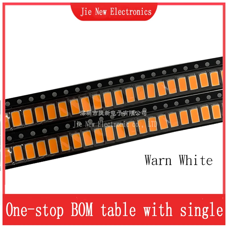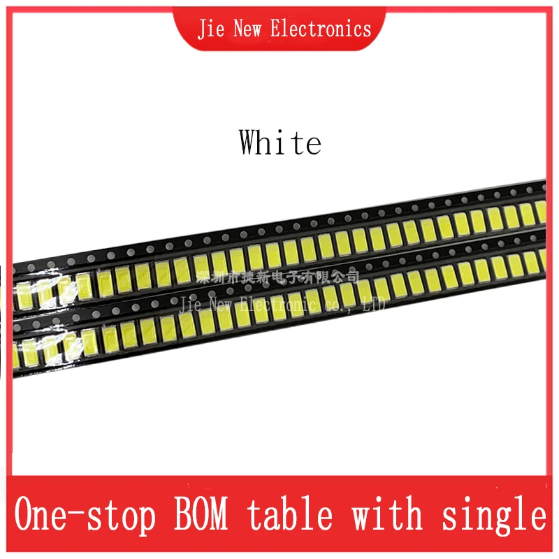 Les diodes LED SMD 100 de la marque JXDZXL sont disponibles en différentes couleurs d’émission, notamment blanc chaud, blanc, blanc froid, rouge, vert, bleu, jaune, orange, rose et violet-UV. Elles sont vendues dans un lot de 5730 pièces. Les dimensions de chaque diode sont de 5.7X3.0 (mm). Elles ont un angle de visualisation de 120 degrés et une intensité lumineuse variante selon la couleur. La tension avant varie de 2.0 à 2.2V pour les couleurs rouge, jaune et orange, et de 3V à 3.2V pour les autres couleurs. Le courant est de 60mA pour les couleurs rouge, vert, bleu, jaune, orange, rose et violet-UV, et de 150mA pour les couleurs blanc chaud, blanc et blanc froid. La polarité est indiquée par une flèche au verso.