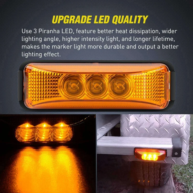 - Utilisez 3 LED Piranha de qualité, offrant une meilleure dissipation de la chaleur, un ange d’éclairage plus large, une intensité lumineuse plus élevée et une durée de vie plus longue, rendent la lumière super durable et produit une excellente lumière ambrée.